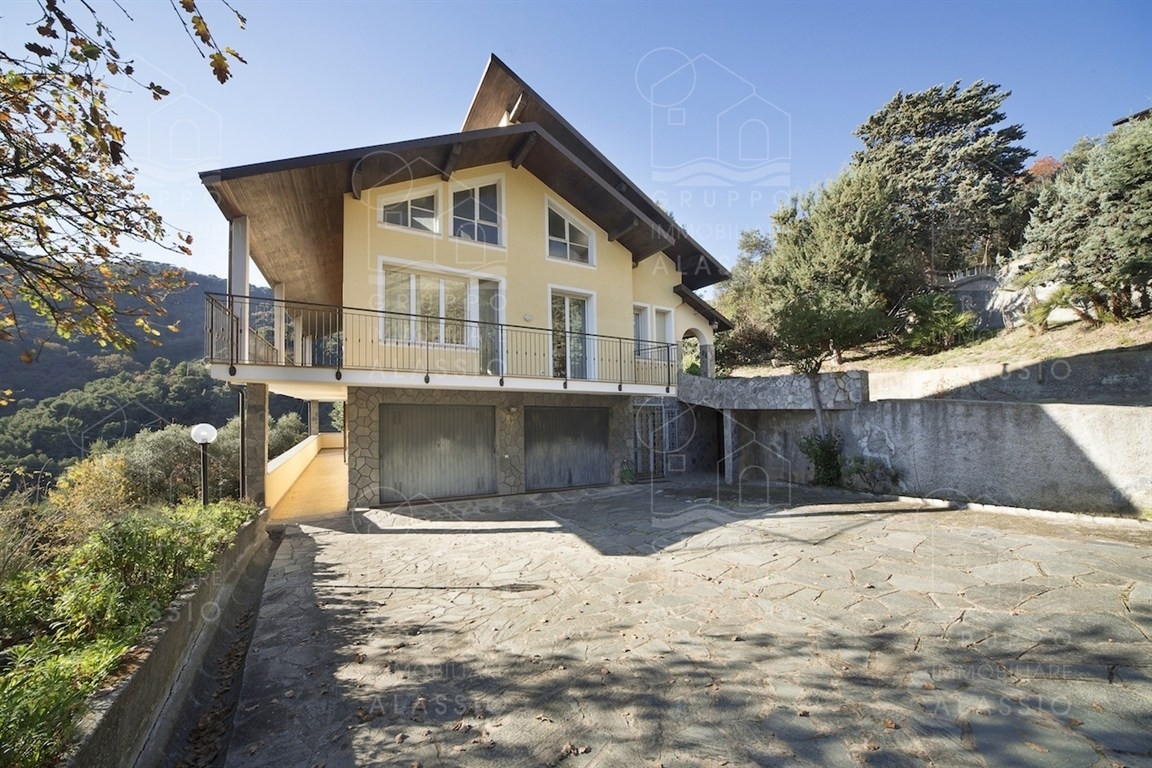 In posizione dominante e riservata, immersa nel verde e nella totale tranquillità, proponiamo splendida villa indipendente con eccezionale esposizione solare e incantevole vista mare, situata a pochi minuti dal centro di alassio (raggiungibile in soli 4 minuti d'auto).la proprietà si sviluppa su una superficie abitativa complessiva di circa 302 mq, sapientemente distribuiti in ambienti eleganti e luminosi, e si circonda di circa 3.000 mq di terreno privato disposto su ampie e pianeggianti fasce, perfette per aree relax, spazi verdi curati, zona barbecue e potenziale area piscina." distribuzione degli spazipiano nobile (abitazione principale) finiture di alto livelloaccedendo dal portico si viene accolti da un ampio ingresso su raffinato disimpegno che introduce al magnifico soggiorno doppio, composto da zona pranzo e zona living, completamente circondato da grandi vetrate che regalano luce naturale e una splendida vista mare.completano il piano una cucina abitabile, uno studio, due ampie camere matrimoniali di cui una con bagno privato e terrazzo esclusivo e un secondo bagno.un grande terrazzo panoramico collega soggiorno, studio e camera, offrendo continuità tra interno ed esterno e permettendo di vivere appieno gli spazi all'aperto.i pavimenti in prezioso parquet doussié africa e altri elementi di pregio conferiscono a questo livello un'eleganza senza tempo e un comfort abitativo superiore.piano terra ideale per ospiti, famiglia o area multifunzionalequi troviamo un ulteriore grande soggiorno, perfetto come area relax, sala cinema, zona giochi o taverna, oltre a due camere, un bagno, locali tecnici e spazi di servizio. dotazioni accessorie e pertinenzedoppio box auto di 69 mqgrande magazzino/porticato di circa 104 mqsottotetto finestrato ampia area esterna pavimentata per manovra e parcheggioterreno privato perfettamente godibile e verde rigogliosoaccesso comodo e carrabile🌿 contestoun'oasi di pace e privacy totale, circondata da natura e silenzio, con vista aperta sulla collina e scorci di mare, pur rimanendo comodamente vicina ai servizi e al mare. Proprietà perfetta come prestigiosa residenza principale, dimora di rappresentanza o esclusiva casa vacanze
