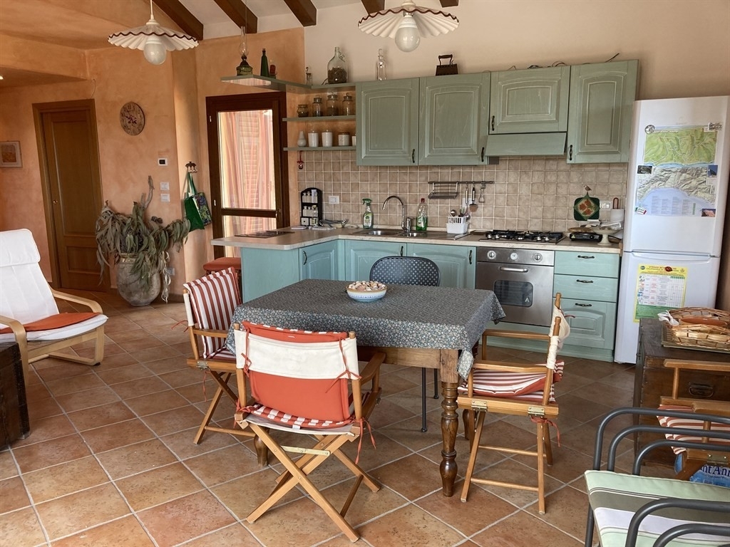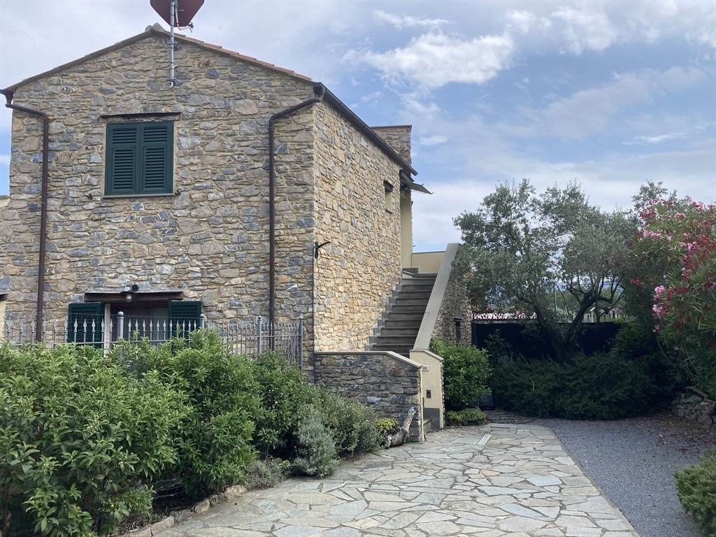 Albenga - campochiesa : a 3 km dal centro città, proponiamo questo stupendo alloggio in villa composta da solo tre unità abitative. Frutto di una sapiente riedificazione di un vecchio rustico , oggi si presenta come un luminosissimo ed accessoriatissimo immobile con ingressi indipendenti, giardini di proprietà, posti auto e grandi autorimesse. L'alloggio, posto al primo ed ultimo piano di questo originale fabbricato in pietra, è composto da un ingresso su disimpegno, un grande ambiente living con cucina a vista e caminetto, due camere da letto e due bagni, entrambi finestrati. Dalla zona giorno si accede a due grandi terrazze di cui una munita di cucina esterna; una terza terrazza da cui godere di una meravigliosa vista panoramica è accessibile attraverso la scala esterna.il tetto di copertura è realizzato in travi di legno lamellare a vista con idonea coibentazione. Ampio uso di pietra locale sulle balaustre delle terrazze. Serramenti a taglio termico in legno con doppi vetri. Termoautonomo con riscaldamento a pavimento e caldaia a condensazione, aria condizionata. Completano la proprietà un gradevole giardino piantumato, un posto auto e una grande autorimessa di circa 35 mq.