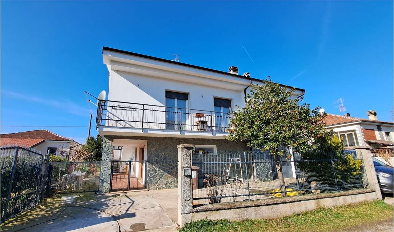 Casa completamente indipendente in contesto residenziale tranquillo, comodo a negozi, scuole e stazione, il tutto raggiungibile a piedi. la casa è in buonissime condizioni sia interne che esterne ed è contornata dal giardino di proprietà. internamente le finiture sono attuali, l'ampia metratura permette di avere tre camere da letto matrimoniali oltre all'ampia zona giorno luminosissima ed accogliente con balcone e canna fumaria per stufa a pellet in aggiunta all'impianto di riscaldamento tradizionale a metano, bagno e locale dispensa con scala a chiocciola che scende al piano terra, dove si trova il grande garage, la taverna, il bagno di servizio e le due cantine. questa bella proprietà è la scelta perfetta per chi cerca indipendenza e sfogo esterno, ma vuole la comodità di avere tutto a portata di mano e non vuole diventare schiavo di un giardino che necessita lunghe ore di lavoro. possibilità di completare la scala a chiocciola fino a raggiungere il locale sottotetto.classe energetica: g