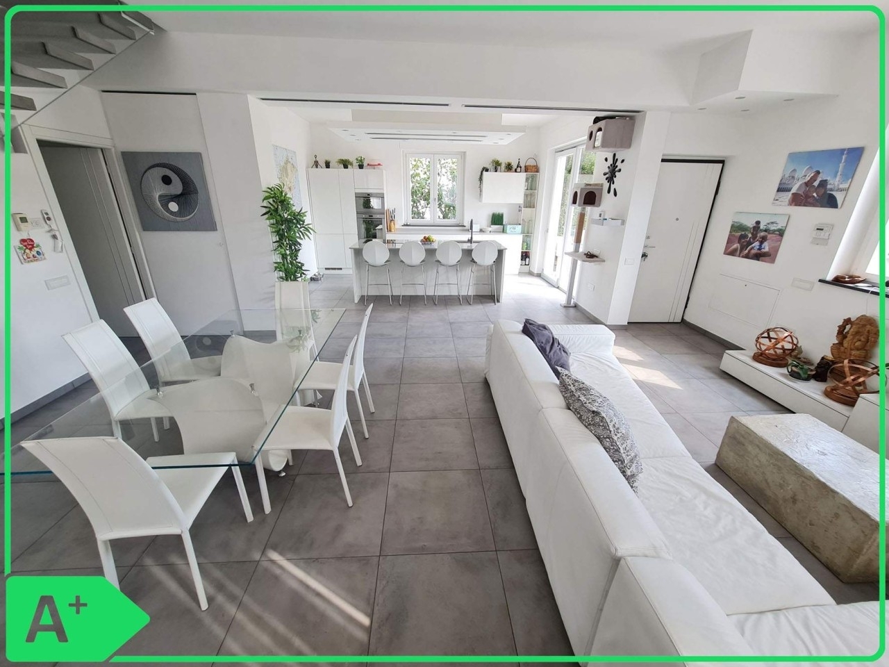 In zona residenziale, comoda al mare e a tutti i principali servizi, proponiamo villa singola della superficie commerciale di circa 220 mq, dotata di 15 mq di balconi e terrazzi, garage di 20 mq esterno, corte esterna pavimentata di circa 150 mq circondata da lotto di circa 500 mq circa dove parcheggiare numerose auto e circa 200 mq di orto/frutteto con accesso esclusivo dotato di impianto di irrigazione automatico e alberi da frutto. La casa è libera su quattro lati, con la zona giorno rivolta a sud e ampie vetrate che la rendono luminosissima e permettono di godersi la vista aperta sul giardino. Al piano terra troviamo l' ampio salone diviso tra zona living e cucina con isola, un disimpegno divide dalla zona notte in cui troviamo una camera matrimoniale, due camerette ed un bagno. Tramite una comoda ed elegante scala interna a vista si accede al piano mansardato abitabile con zona fitness, bagno, soggiorno doppio, e stanza studio/lavanderia. La proprietà è stata completamente ristrutturata nel 2016 con interventi di riqualificazione energetica (capotto termico, infissi a taglio termico, pannelli solari, eliminazione gas metano) che hanno portato la classe energetica fino alla classe a1.