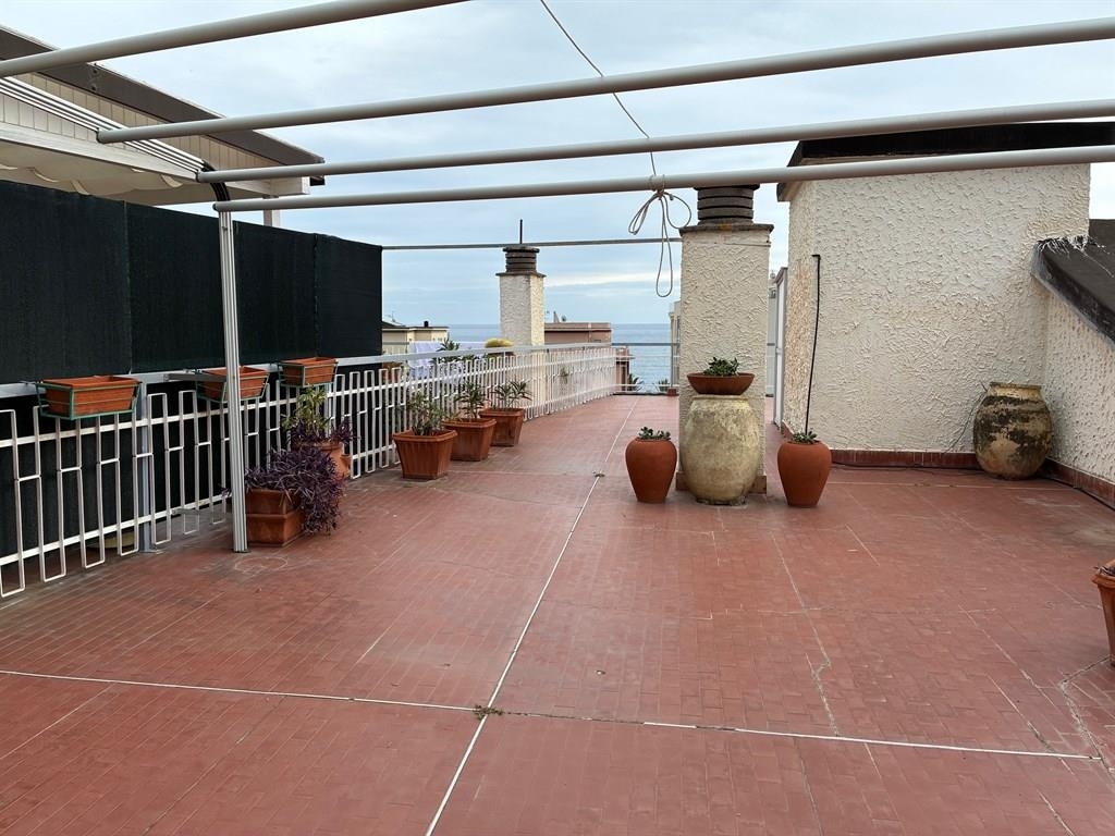 Spotorno, a pochi passi dal mare, affittiamo splendido attico recentemente ristrutturato e arredato con gusto moderno. l'appartamento è composto da: ingresso, ampio salone, due camere da letto, cucina abitabile, servizi e grande terrazzo di 80 mq con meravigliosa vista sull'isola di bergeggi.' dotazioni e comfort: arredi moderni, divano nuovo e locali appena imbiancati, ventilatori a pale a soffitto in ogni stanza, inferriate su tutte le finestre e portoncino blindato, cucina completamente attrezzata con stoviglie nuove, cassaforte. Il terrazzo è dotato di tendone da sole, tavolo, 4 sedie ed 1 chaise longue. Possibilità di box auto. Affittasi stagione estiva a 11.000,00 € o annuale a 18.000,00 €. No residenti solo uso turistico. Bimar sas tel