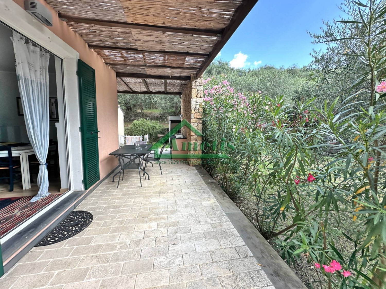 Bardino nuovo - l'agenzia immobiliare ametis propone in vendita questa villa in ottime condizioni, ristrutturata, disposta su due piani cosù distribuita: ingresso, grande soggiorno con camino in marmo dell'800 piemontese, cucina abitabile, corridoio, due camere, bagno, scala a chiocciola di accesso al piano primo con salotto, camera, bagno e terrazzo panoramico.al piano terra ampia zona con pergolato per utilizzo dello spazio esterno. La vista panoramica è aperta sulla vallata sino al mare. La proprietà è recintata in parte e dotata di cancello non automatizzato e muri in pietra locale e le fasce pianeggianti, con parcheggio per alcune auto sotto gli ulivi. Giardino 2300mq cui si accede con strada privata. L'esposizione prevalente è a sud. la villa dista 7,5km dal mare, molto curata in ogni particolare anche per la scelta dei materiali di pregio che sono stati usati sia per il parquet interno sia per le pavimentazioni esterne in travertino, i serramenti esterni porte e finestre sono in pvc bianco, le persiane sono in alluminio anodizzato verde, è presente una porta blindata, impianto elettrico a norma, riscaldamento a pavimento, è stato isolato con intercapedine areata il muro a nord, sono presenti due vmc modello ecodry per la ventilazione anche in assenza di persone.agenzia ametis dal 1929 tel. + cell. E whatsapp + il presente annuncio ha scopo informativo indicativo e non costituisce elemento contrattuale.