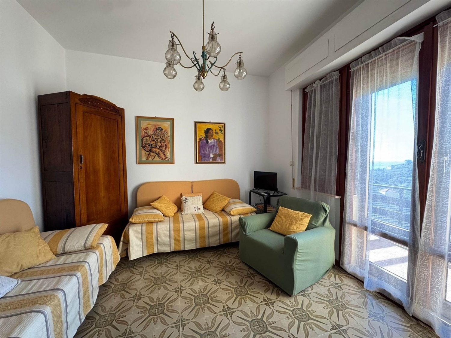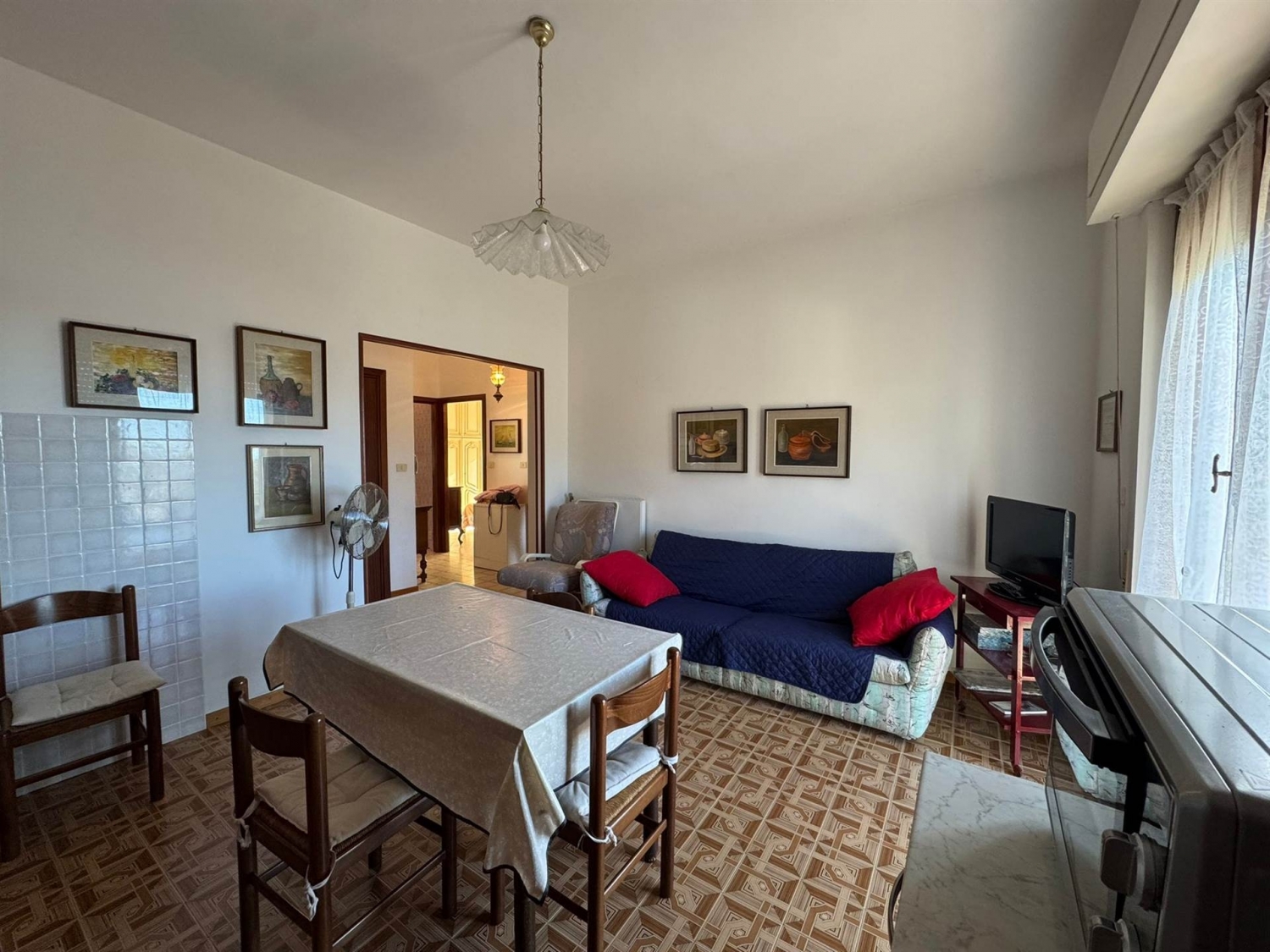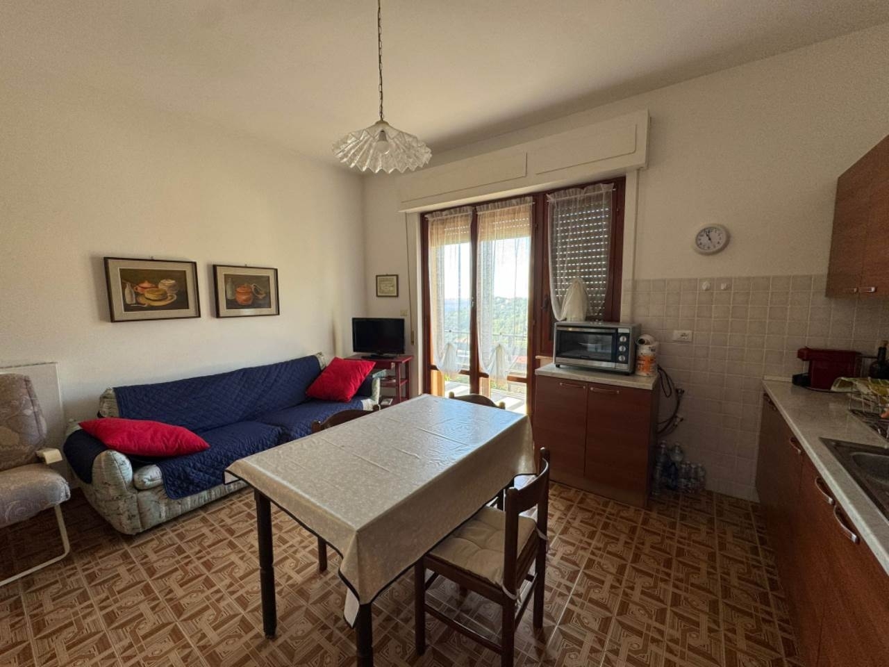 Per gli amanti della tranquillità a circa 3 km dal mare appartamento con stupenda vista mare e collina a pochi, composto da: ingresso soggiorno con angolo cottura, n. 2 camere, bagno, da ogni camera e soggiorno si accede a un terrazzino abbastanza profondo. Comprendente: posto auto e lavanderia al piano terra.l'appartamento è ben tenuto e tutti gli impianti revisionati, le finiture sono dell'epoca della costruzione del palazzo. classe energetica: f epi: 203,72 kwh/m2 anno