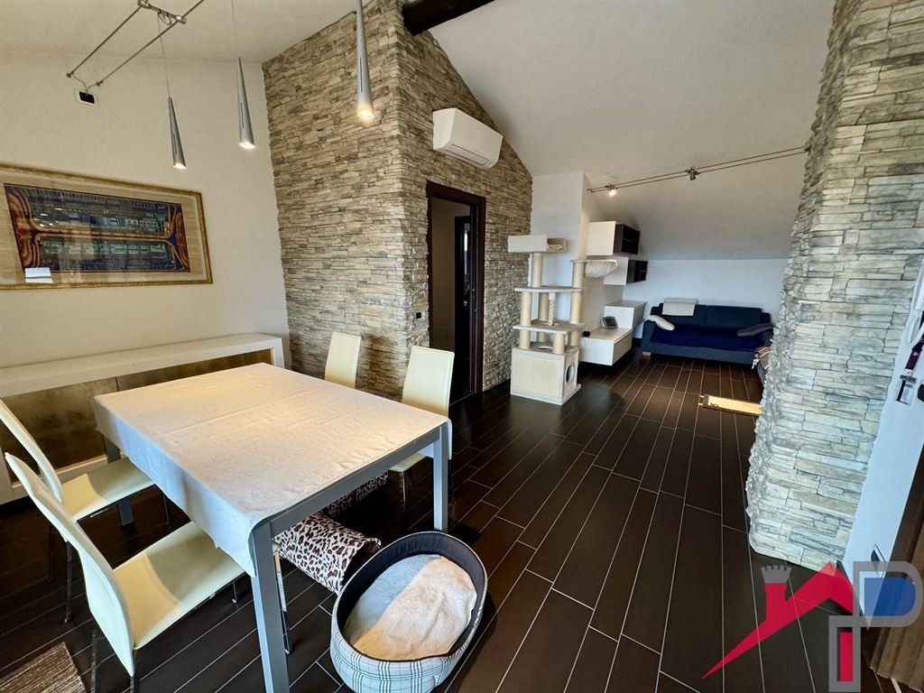 Proposta in corso!!!! caprino bergamasco, zona collinare inizio di celana, in palazzina di soli 4 appartamenti al 2° piano ed ultimo si propone un'appartamento spazioso son soffitti mansardati che donano piacevole movimento all'immobile, composto da: ingresso, ampio soggiorno con zona pranzo separata e uscita su ampio balcone panoramico dove é possibile posizionare un tavolo pranzo, cucina abitabile, disimpegno, 2 camere letto, bagno, comodi rispostigli di cui uno attrezzato per la lavatrice e locale termico. Completa la proprietà un ampia autorimessa per un'auto oltre a spazio uso deposito e possibilità di parcheggio di una seconda auto all'interno del cortile. L'immobile é stato completamene ristrutturato con gusto, presenta riscaldamento a pavimento con caldaia a condensazione, aria condizionata con pompa di calore (caldo/freddo), impianto fotovoltaico da 4,6 kw, impianto d'allarme, impianto videosorveglianza, impianto di aspirapolvere centralizzato in tutta la casa, tende da sole. Le finiture sono di buonissimo livello e rendono l'immobile esteticamente molto piacevole. Dal balcone si gode di una bellissima vista panoramica. La palazzina molto contenuta ha pochissime spese condominiali che vengono gestite in autonomia senza amministratore, (corrente elettrica, acqua, taglio erba del giardino, manutenzione strada e cancello elettrico) - ottima soluzione per giovani coppie e per famiglie.