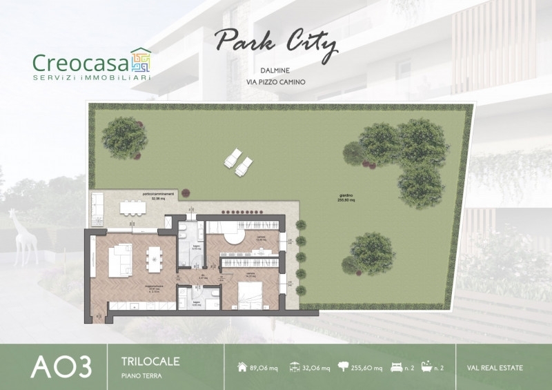 Dalmine zona brembo, vendita diretta no provvigioni!park city è il nuovo complesso residenziale in fase di realizzazione in una delle zone più esclusive di dalmine, adiacente al parco falcone e borsellino.due eleganti palazzine dal design moderno, con finiture di pregio e soluzioni abitative di varie tipologie: bilocali, trilocali, quadrilocali e attici.trilocale - piano terra con giardino - palazzina aproponiamo trilocale al piano terra con ampio giardino privato, composto da:- ampio soggiorno con cucina a vista e accesso diretto al giardino di 287 mq (comprensivo di 32 mq di portico);- disimpegno;- doppi servizi;- camera da letto di 13 mq;- camera matrimoniale;- entrambe le camere hanno l'accesso diretto al giardino- possibilità di personalizzare la distribuzione interna degli spazi.dotazioni- riscaldamento autonomo a pavimento con pompa di calore mitsubishi;- pannelli fotovoltaici dedicati;- predisposizione aria condizionata, videosorveglianza e allarme (perimetrale e volumetrico);- impianto di ventilazione naturale;- finiture di alto livello: pietra di credaro, parapetti in vetro, design moderno.- possibilità di box di diverse metrature, con basculante sezionale motorizzata.- impianto elettrico con frutti bticino- sanitari ideal standard serie new tesi- progettazione illuminotecnica notturnaclasse energetica di progetto: a2 o superioretempi di realizzazioneinizio lavori: marzo 2026consegna palazzina a: fine 2027consegna palazzina b: primavera 2028contattiper informazioni o appuntamenti:massimo (anche whatsapp)☎️ufficio servizi offerticonsulenza mutuo gratuita tramite partner creditizio;valutazione gratuita del vostro immobile;preventivo spese gratuito per l'acquisto.