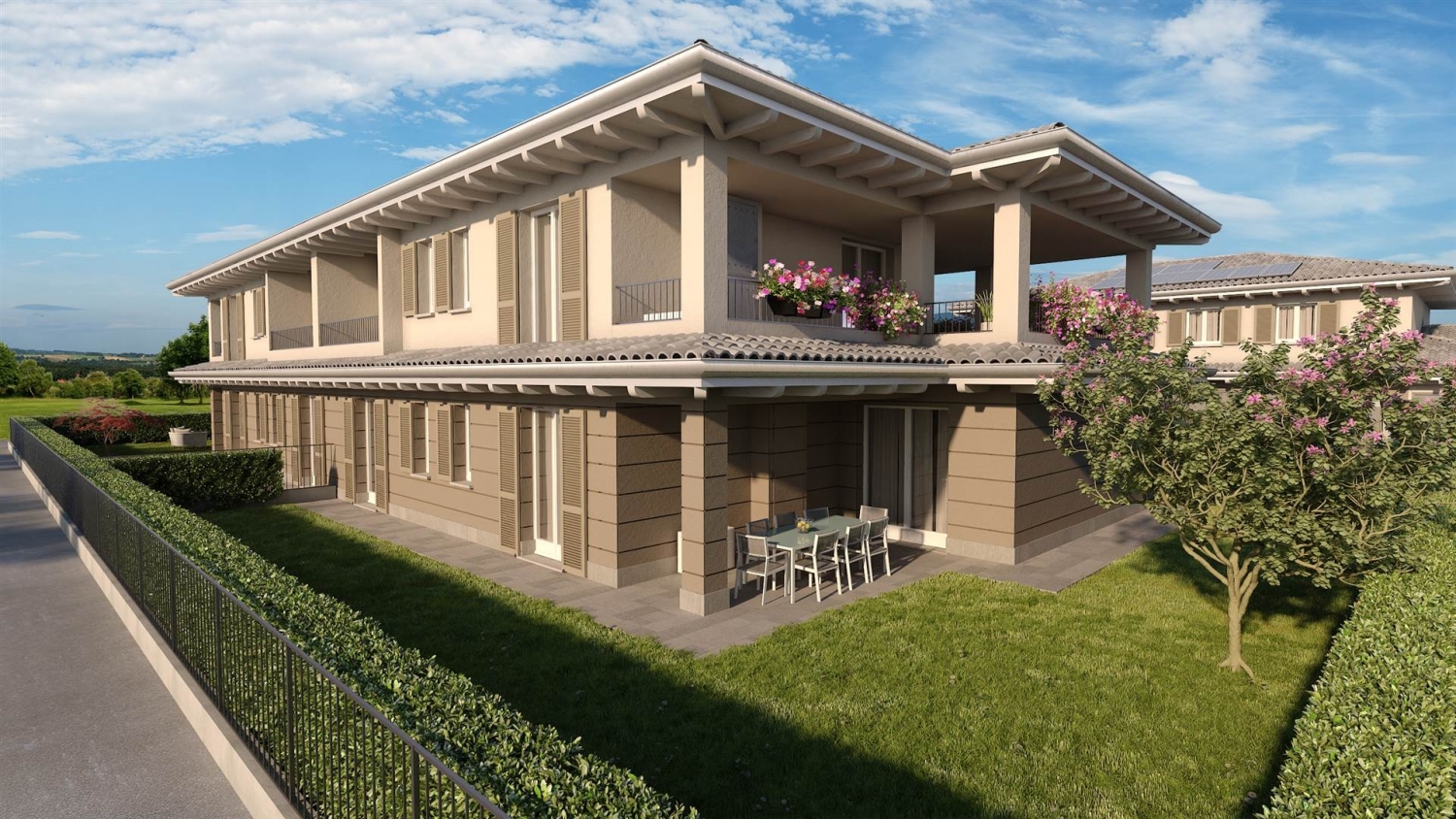 #appartamento con terrazza coperta a osio sotto, in via san donatol'appartamento è al piano primo, libero su tre lati (introvabile) ed è composto da grande soggiorno 38 mq e servito da stupenda terrazza coperta di 39 mq, cucina a vista separabile con annesso ripostiglio/dispensa, 2 grandi camere di (15-12mq) 'possibile aggiungere una 3a camera', doppi servizi; autorimessa al piano terra adiacente, area esterna di 23 mq. L'abitazione offre elevati standard qualitativi e di vivibilità ed è certificata in classe a4. è dotata di impianto fotovoltaico, riscaldamento a pavimento, caldaia a pompa di calore, serramenti esterni e interni laccati con predisposizione delle zanzariere a scomparsa a chiusura anti-effrazione, vetri termo camera basso emissivi, autorimessa con basculante elettrica sezionale. Il capitolato offre inoltre la possibilità di scegliere finiture selezionate in una gamma di elevata qualità o di personalizzarle secondo le proprie esigenze. L'ingresso indipendente sia pedonale che carrale, offre ulteriore privacy e comodità, mentre il riscaldamento autonomo consente di gestire al meglio il clima interno. Le finiture di alta qualità, rendono questo appartamento una scelta ideale per chi desidera abitare in un contesto elegante e funzionale. Predisposizione alle zanzariere, allarme volumetrico e perimetrale, video sorveglianza, sezionale elettrica coibentata, distribuzione interna degli spazi completamente personalizzabile senza costi aggiuntivi; inoltre offriamo servizio di vendita del tuo usato. Contattaci per una visita in ufficio,o nei nostri cantieri o per una valutazione gratuita e senza impegno del tuo immobile Colleonistudioimmobiliare classe energetica: a4