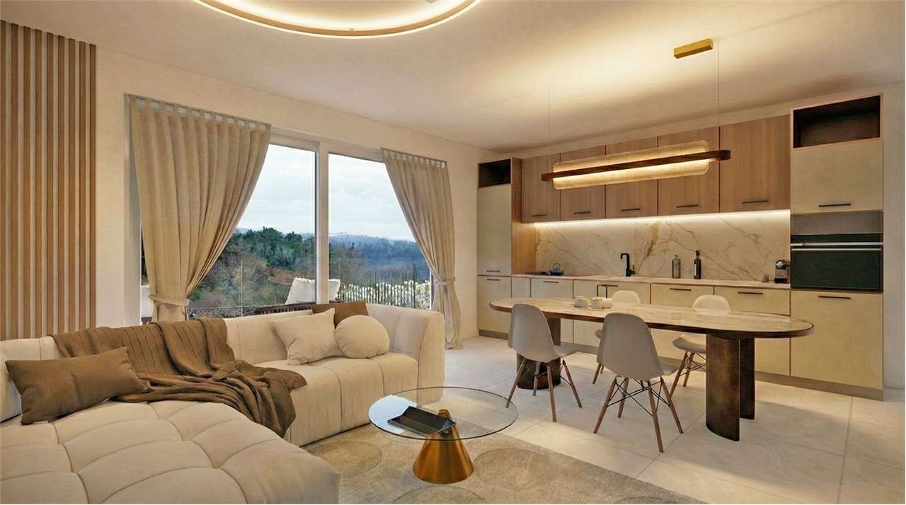 Collinare, in esclusivo nuovo contesto residenziale, proponiamo luminoso trilocale con graziosa zona giorno completamente riversa sul superlativo affaccio panoramico offerto dal grande terrazzo abitabile coperto esposto a sud, 2 gradini collegano la zona notte dando eleganza e carattere all'ambiente, il bagno con doccia e una piccola area verde completano il primo livello, scendendo al piano inferiore ci troviamo nella spaziosa taverna da poter adibire a zona gaming, home theatre o accogliente spa con palestra, il secondo bagno con lavanderia chiudono la zona terra con la massima comodità data dall'adiacente doppio box in larghezza, la consegna è prevista per la fine dell'estate 2026 con la possibilità ancora in essere di personalizzazione interni!!!classe energetica: 3,51 kwh/m2 a