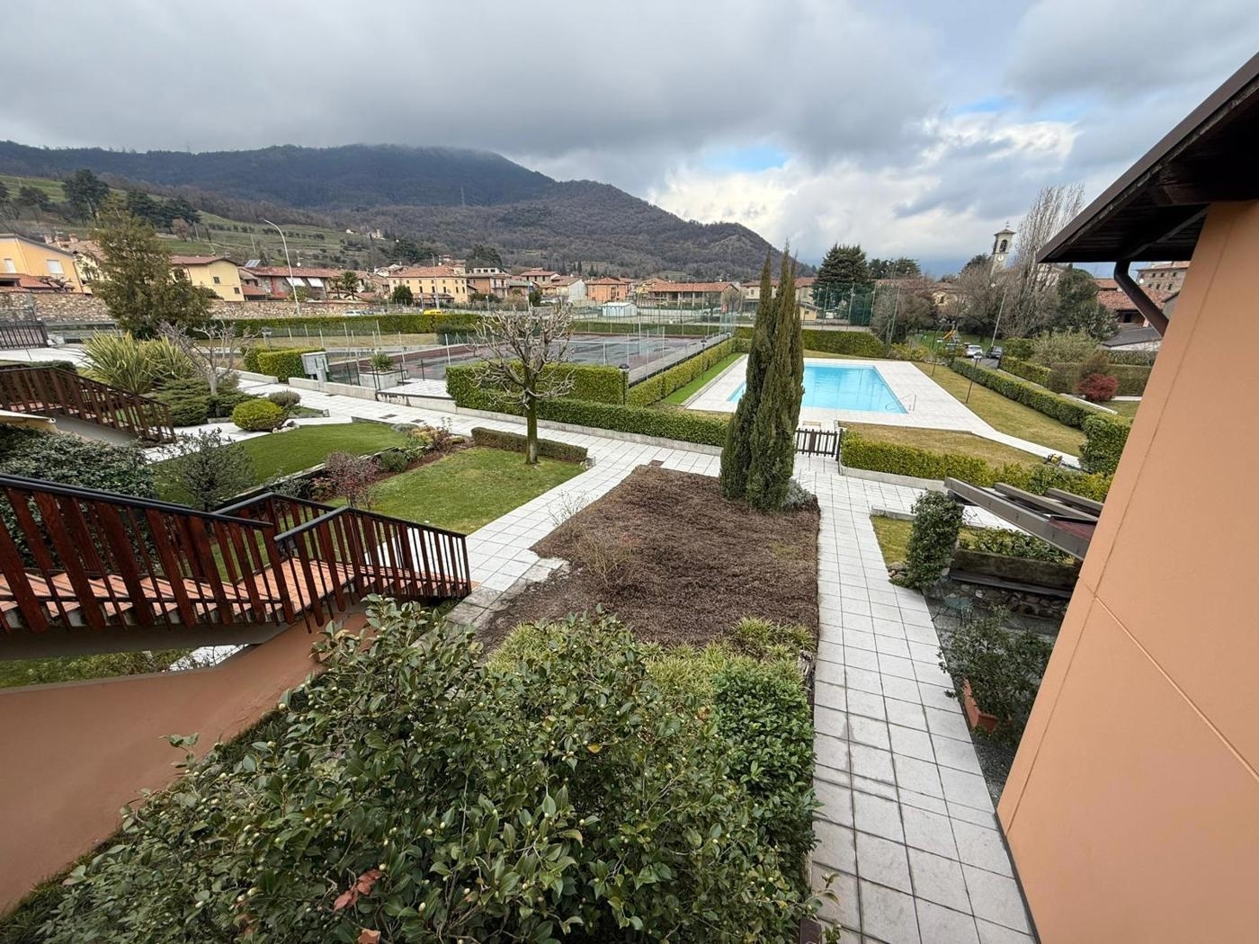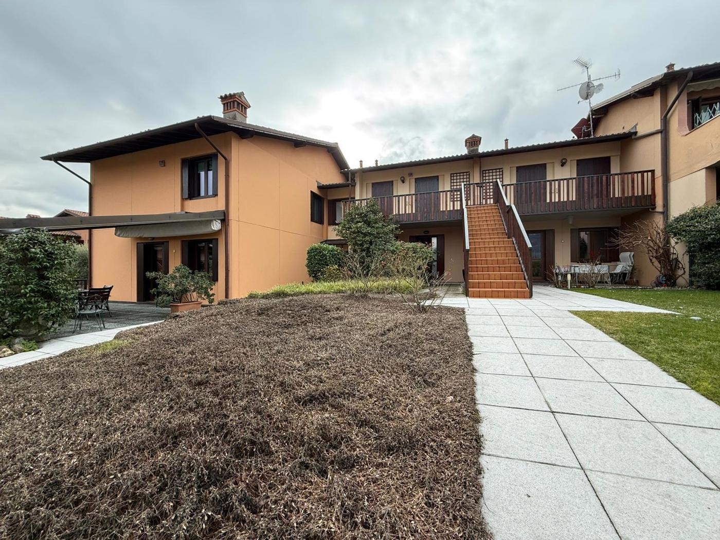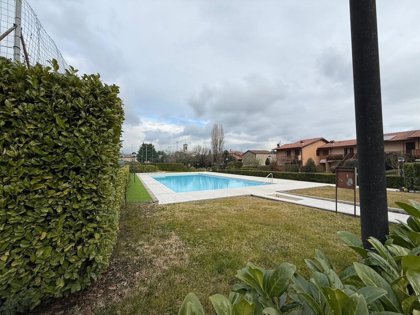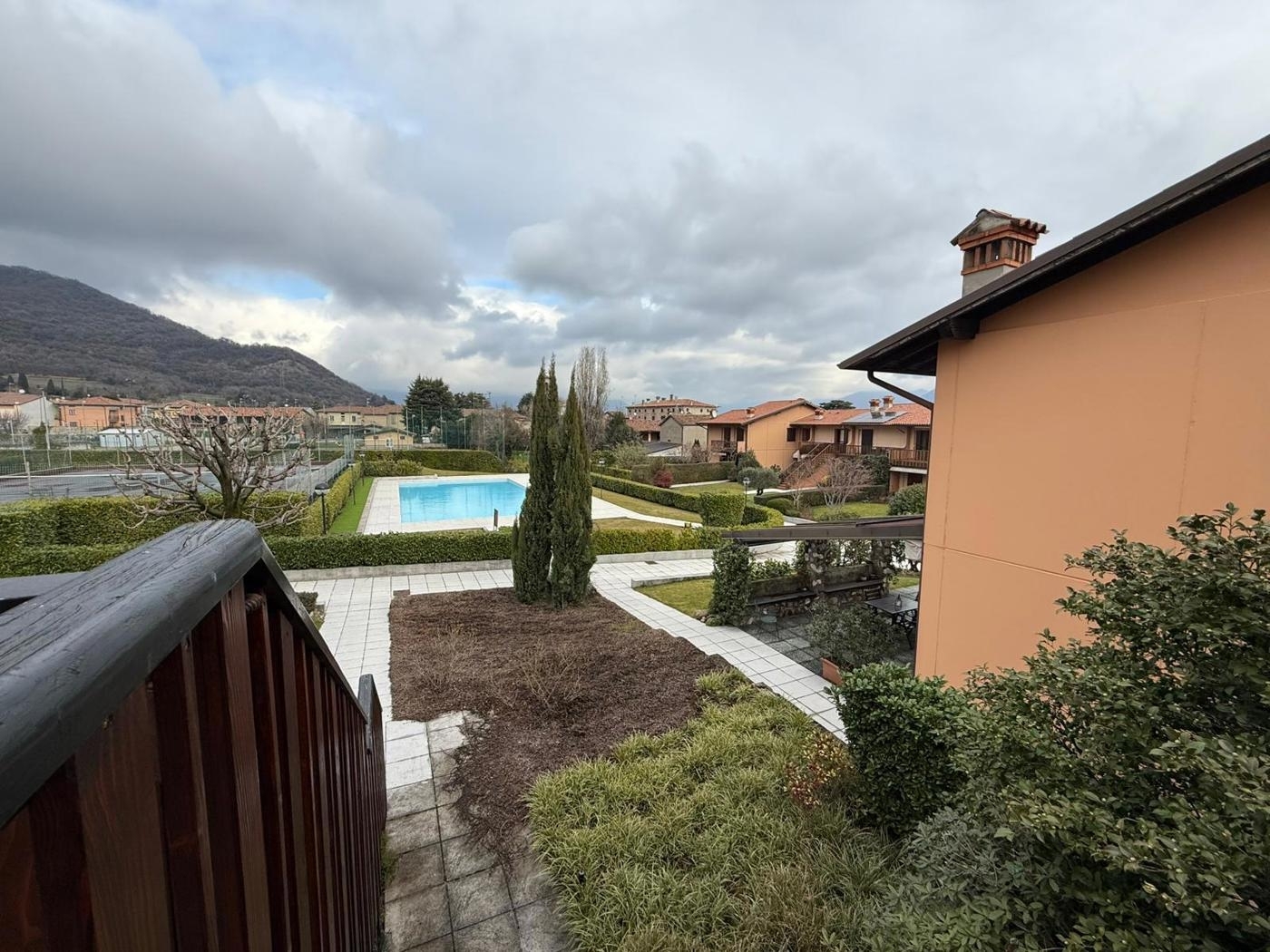 Corte franca - nigoline: in tranquillo e ben abitato residence, proponiamo in vendita appartamento al piano terra con corte ad uso esclusivo. l'unità si sviluppa due sue livelli: al piano terra ampia zona soggiorno con cucina separata, ma a vista e accesso diretto allo spazio verde di pertinenza esclusiva. tramite scala interna, acceso al piano notte composto da due ambienti con accesso a porticato esterno ideale per pranzi e cene all'aperto. a completare, bagno, spazio lavanderia e comoda autorimessa doppia in lunghezza. l'appartamento è dotato di impianto di riscaldamento autonomo (caldaia di recente installazione), serramenti legno doppio vetro e impianti funzionanti. la soluzione nasce all'interno di un residence della fine degli anni '80 impreziosito da piscina comune accessibile ai proprietari e campo da tennis. libero subito.