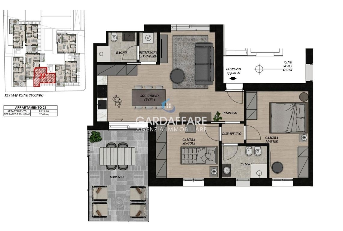 Desenzano del gardaal ridosso del centro di desenzano in via rimembranze, siamo lieti di proporvi in vendita un nuovo progetto residenziale di 24 unità con piscina e giardini privati.ci sono disponibili vari tipologie di appartamenti bilocali, trilocali e quadrilocali con terrazzi o giardini privati. Il residence avrà 3 ascensori che conferirà una massima comodità quotidiana. Possibilità di abbinare il garage in base alle proprie esigenze.inizio lavori fine 2025 - consegna primavera 2027.l' appartamento proposto è un trilocale attico al secondo piano con loggia e ascensore. L'appartamento è composto da soggiorno con cucina a vista, disimpegno, due bagni di cui uno finestrato, una camera matrimoniale e una camera singola. La zona giorno si completa con una grande loggia di 18 mq vista piscina. Possibilità di scegliere una garage singolodoppio ad un prezzo extra.richiesta prezzo 405.000 euro + iva di leggegarage singolo o doppio a parte da 35.000 a 70.000 + iva di legge.classe energetica a3a4per info gardaffare rif. 25-33.