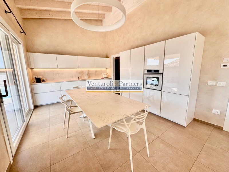 Questa villa ha una superficie di 176 mq ed è caratterizzata da finiture di alta qualità che offrono il massimo comfort per la vita quotidiana.la villa si sviluppa interamente su un unico piano, creando un ambiente armonioso e funzionale. All'interno troverete un ampio salone luminoso con cucina a vista. La disposizione include due bagni moderni, una camera matrimoniale spaziosa, una camera singola accogliente e una doppia ideale per ospiti o bambini. Un disimpegno attrezzato con armadi offre ulteriore spazio utile insieme a un secondo locale armadi.non manca nemmeno uno spazio dedicato alla lavanderia dotata di wc; inoltre, il garage doppio rappresenta una comodità preziosa.il sistema di riscaldamento autonomo alimentato da pannelli fotovoltaici garantisce bassi costi energetici e grazie all'impianto a pavimento presente in tutta la casa, potrete godere della temperatura ideale durante tutto l'anno supportati dai climatizzatori installati.all'esterno vi attende un giardino privato dove rilassarsi immersi nella natura circostante; qui troverete anche una splendida veranda affacciata sulla piscina.l'immobile gode anche di ottima esposizione grazie alle numerose finestre che permettono l'ingresso della luce naturale durante tutto il giorno rendendo gli spazi ancora più accoglienti.situata vicino al lago di garda, famosa meta turistica ricca di attività all'aperto come escursioni e sport acquatici oltre ad essere ben collegata ai principali servizi cittadini: ristoranti gourmet, negozi locali e scuole eccellenti sono facilmente raggiungibili dalla vostra nuova dimora!contattateci oggi stesso presso l'agenzia immobiliare referenziata per ulteriori informazioni o prenotare una visita! non lasciatevi sfuggire questa opportunità unica!