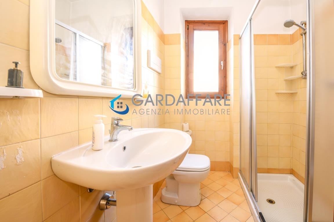 Manerba lago garda. in zona centralissima comoda a tutti i servizi, spazioso appartamento al primo piano di casa bifamiliare con corte comune e posto auto pertinenziale.l'appartamento è composto da cucina separata e abitabile, soggiorno, ampio disimpegno, camera singola, bagno, scala interna che conduce al piano superiore con due camere, bagno e ulteriore vano sottotetto al rustico di 60 mq. altra unità a disposizione di circa 60 mq separata dall'abitazione principale e venduta come nuda proprieta'.richiesta: euro 280.000. C.e. 'f' ipe 204.51. Gardaffare Rif. 22-67