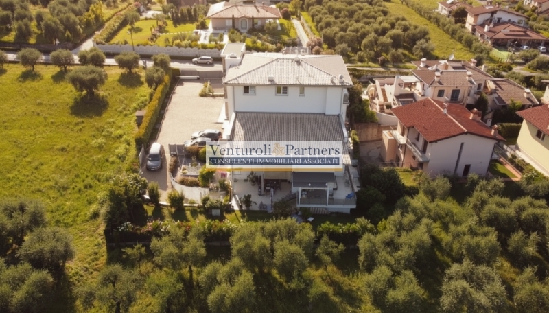 In uno dei contesti più eleganti e riservati di manerba del garda, proponiamo in vendita una prestigiosa villa di testa immersa nel verde, adiacente a un uliveto e inserita in un residence esclusivo composto da sole sei unità abitative. la proprietà si estende su circa 400 mq di terreno recintato che garantisce privacy assoluta, mentre la superficie interna è pari a circa 220 mq distribuiti su tre mezzi piani dall'architettura armoniosa e luminosa.la zona giorno offre ambienti ampi caratterizzati da soffitti alti (circa 4 metri), grandi vetrate panoramiche sul paesaggio circostante ed elegante camino per momenti conviviali. la cucina separata completamente attrezzata in acciaio inox , dispone anche di area pranzo dedicata. L'interno comprende tre camere da letto, due bagni completi oltre a wc ospiti, spazio studio all'ingresso, area lettura/relax e numerosi locali accessori utilissimi alla vita quotidiana.all'esterno troviamo una terrazza parzialmente coperta di 22 mq affacciata sulla natura ed un portico vivibile di 34 mq: veri prolungamenti degli spazi interni ideali per cene all'aperto o relax godendo della raffinata vista lago con scorci sul monte baldo fino ai territori limitrofi come salò e san felice del benaco.tra le dotazioni distintive: piscina condominiale circondata dal prato curatissimo ad uso esclusivo delle sei ville; autorimessa sotterranea privata collegata direttamente alla lavanderia un posto auto esterno; impianto fotovoltaico recente (2,94 kwp); climatizzazione nelle camere, arredi realizzati su misura inclusivi di armadiature fisse e irrigazione automatica per il giardino privato. Tutta la residenza è stata oggetto di ristrutturazione completa nel 2023 con impiantistica nuova.situata pochi minuti sia dal centro paese che dalle spiagge del lago di garda ma immersa nella tranquillità tipica dell'entroterra gardesano tra vigneti ed olivi secolari: questa soluzione rappresenta l'opportunità ideale sia come abitazione principale che come casa vacanze d'eccellenza.non lasciarti sfuggire questa rara occasione! contattaci subito !!