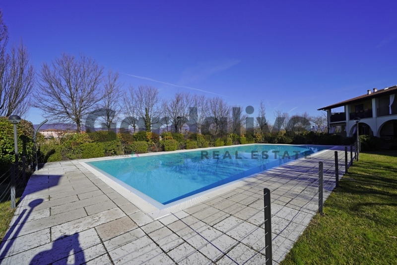 Manerba del garda - porzione di bifamigliare su due livelli in contesto esclusivo residenziale con piscina.a manerba del garda, in posizione tranquilla e riservata, comodissima ai principali servizi come supermercati, scuole, farmacia ed alla viabilità, proponiamo in vendita porzione di bifamigliare su piu livelli in residence con piscina. l'unità è composta da un ingresso indipendente dal cancellino esclusivo, ampia zona living con cucina a vista, salendo al primo piano camera matrimoniale con bagno, camera doppia e altra cameretta singola, completa l'unità il bagno di servizio della zona notte con doccia e finestra. l'immobile è dotato di riscaldamento con caloriferi, impianto d'allarme, pannelli fotovoltaici.completano la proprietà un ampio posto auto doppio coperto al piano interrato con cantina, il giardino comune e l'ampia zona piscina.date le sue generose dimensioni è ideale sia come prima casa che come casa per le vacanze.