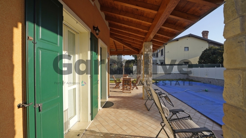 Nel cuore di manerba del garda, nella rinomata e sempre più richiesta zona di pieve vecchia, a soli 500 metri dalle spiagge, proponiamo una splendida porzione di bifamiliare libera su tre lati, inserita in un contesto residenziale elegante, tranquillo e riservato, composto prevalentemente da ville.l'abitazione, di recente costruzione e in condizioni impeccabili, si distingue per la grande luminosità degli ambienti, la qualità delle finiture e l'ottima vivibilità sia degli spazi interni che esterni.l'ingresso apre su una zona giorno ampia e accogliente, dove il soggiorno con camino dialoga perfettamente con la cucina a vista moderna e funzionale. Le grandi superfici vetrate donano luce naturale per tutto il giorno e accompagnano lo sguardo verso l'esterno, creando una continuità naturale tra interno ed esterno. Da qui si accede direttamente al grande portico coperto, un vero living all'aperto, ideale per pranzi, cene e momenti di relax in ogni stagione.il portico si affaccia sul giardino privato, perfettamente curato, che ospita una piscina privata già realizzata e funzionante, elemento raro e di grande valore nella zona. Un angolo riservato e silenzioso dove godere appieno del clima del garda, in totale privacy.la zona notte è ben separata e composta da due camere matrimoniali di generose dimensioni, entrambe luminose e ariose, oltre a un terzo locale estremamente versatile, perfetto come terza camera, studio, cabina armadio o spazio hobby, a seconda delle esigenze. Il bagno, finestrato, è dotato di una comoda doccia ed è rifinito con materiali di qualità.una scala interna collega direttamente l'abitazione al piano interrato, dove si trova un ampio garage doppio con zona lavanderia e spazi accessori ideali per deposito, biciclette e attrezzature, rendendo la casa estremamente funzionale anche come abitazione principale.l'immobile è dotato di riscaldamento autonomo, climatizzazione, camino, serramenti in ottime condizioni e non necessita di alcun intervento: è pronto per essere abitato da subito.questa proprietà rappresenta una soluzione ideale sia come prima casa di livello, sia come residenza per le vacanze sul lago di garda, grazie alla posizione strategica, alla vicinanza al lago e alla combinazione sempre più rara di giardino, piscina privata e indipendenza.