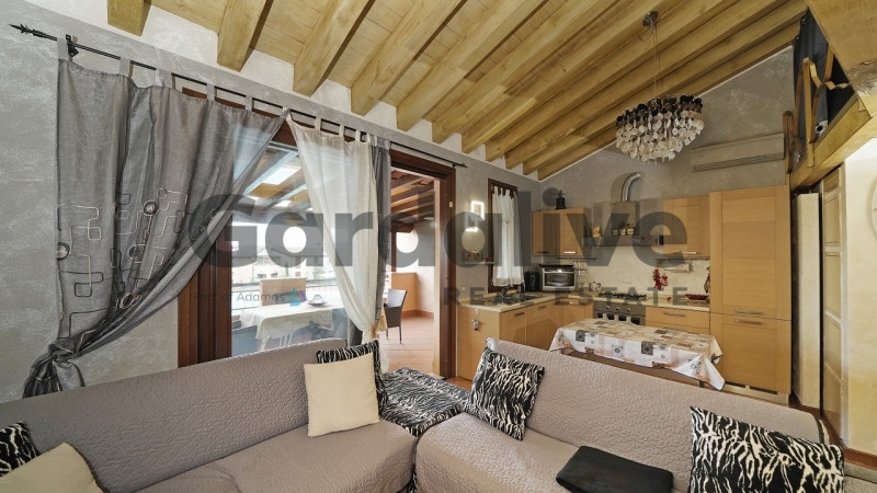Appartamento all'ultimo piano con terrazza vivibile in residence con piscinaall'interno del rinomato residence 'la rocca', a pochi minuti dalle sponde del lago di garda, proponiamo un raffinato appartamento posto al piano primo ed ultimo, una soluzione che garantisce massima privacy, silenzio e una piacevole apertura sulla piscina. L'immobile si distingue per l'eccellente stato manutentivo, la cura dei dettagli e viene venduto arredato, pronto per essere vissuto fin da subito.la zona giorno è accogliente e ben organizzata, con soggiorno e angolo cottura perfettamente integrati e accesso diretto a una terrazza vivibile, ideale per pranzi all'aperto e momenti di relax. Il comfort abitativo è ulteriormente valorizzato dalla presenza del riscaldamento a pavimento, che assicura una distribuzione uniforme del calore e un'elevata qualità degli ambienti.la zona notte comprende una spaziosa camera matrimoniale e un pratico soppalco, utilizzabile come spazio accessorio multifunzionale, ideale come zona relax, area hobby o comodo spazio di appoggio completa il piano un bagno finestrato, ben rifinito, con comodo spazio dedicato alla lavanderia.al piano seminterrato troviamo un ampio garage di circa 26 mq, facilmente accessibile e in grado di ospitare due auto.il residence 'la rocca' rappresenta uno dei contesti più richiesti della zona, grazie agli ampi spazi verdi perfettamente curati e ai servizi esclusivi: piscina di grandi dimensioni con area idromassaggio, campi da tennis, uliveto e zone relax. La presenza di videosorveglianza h24 e del servizio di portineria garantisce sicurezza, ordine e una gestione impeccabile durante tutto l'anno.una soluzione di alto livello, ideale come casa vacanza o investimento, perfetta per chi desidera vivere il lago di garda in un contesto curato, riservato e ricco di servizi.