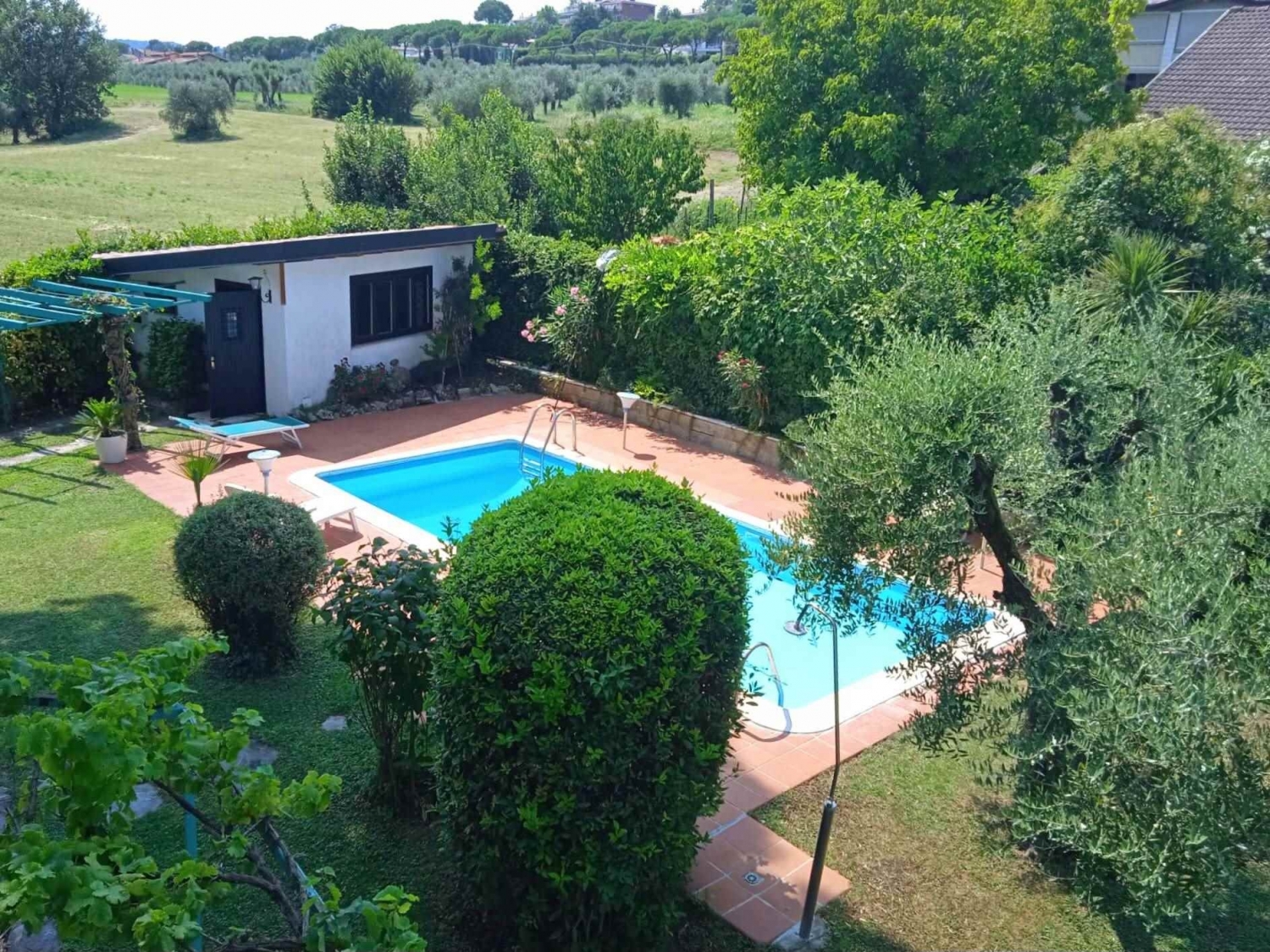 Proponiamo in affitto sia settimanale che mensile un bilocale all' interno di una villa con giardino e piscina privata.l'appartamento si trova al piano primo con ingresso indipendente ed e' composto da soggiorno con angolo cottura ed affaccio sulla terrazza vivibile, camera da letto matrimoniale e bagno con doccia.zona servita e comoda a tutti i servizi.il prezzo settimanale comprensivo di tutte le utenze e' di euro 600disponibile da giugno a settembrechiamaci per maggiori informazioni e per fissare una visita. Classe energetica: g