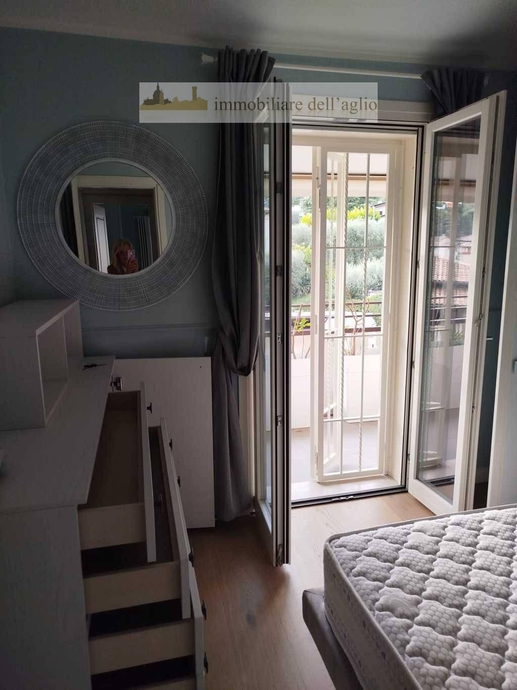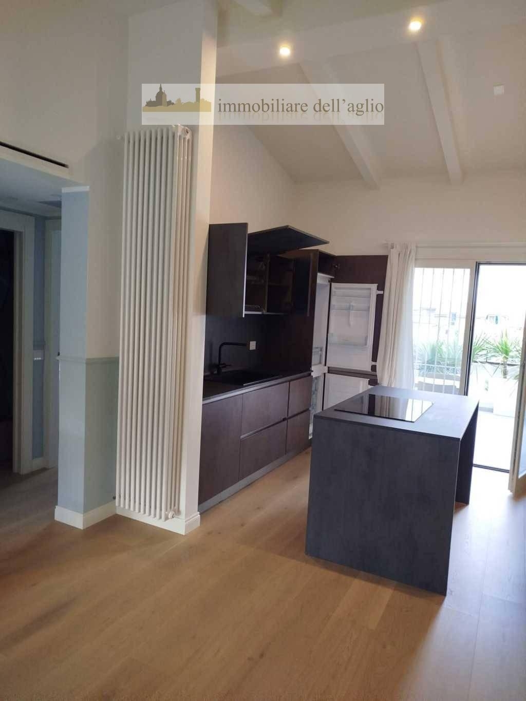 Nel centro storico di padenghe sul garda, a pochi passi da tutti i principali servizi, proponiamo elegante trilocale al secondo ed ultimo piano di una piccola e riservata palazzina. L?appartamento, finemente arredato, si distingue per la sua luminosità e per le tre terrazze vivibili che ne esaltano il comfort.la zona giorno è composta da un ampio soggiorno con angolo cottura moderno e penisola centrale, tavolo da pranzo e zona relax con divani. Da qui si accede a una spaziosa terrazza attrezzata, ideale per cene estive e momenti di assoluto relax all?aperto.la zona notte ospita due camere da letto, una matrimoniale e una singola, entrambe con accesso a terrazze private. Il bagno, rifinito in pregiato marmo grigio, è dotato di una comoda doccia e arredi di qualità.completano la proprietà due posti auto coperti e una cantina al piano interrato. L?immobile è termoautonomo e gode di spese condominiali contenute.