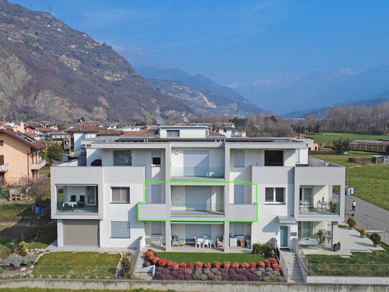 a piamborno, frazione di piancogno, in nuova e tranquilla zona residenziale a pochi passi dalla campagna del paese e dalla pista ciclabile del fiume oglio, proponiamo in vendita trilocale di circa 80 mq commerciali posto al piano primo di palazzina moderna costruita nel 2019.l€immobile à pari al nuovo, completamente arredato e mai abitato.la soluzione à composta da:- soggiorno con cucina a vista- disimpegno- ampio bagno con doccia doppia e sanitari sospesi- camera matrimoniale- camera singolapresenti due balconi:- balcone principale accessibile dalla zona giorno tramite ampio serramento scorrevole (con presa e scarico acqua)- secondo balcone accessibile dalla camera matrimoniale.dotazioni:- riscaldamento e raffrescamento a pavimento- impianto termoautonomo con caldaia e pompa di calore- termostato tri-zona- sistema di deumidificazione centralizzato- tapparelle elettriche- cappotto termico- serramenti pvc doppio vetrocompleta la proprietà ampio box singolo al piano seminterrato dotato di presa e scarico acqua.palazzina con pannelli fotovoltaici per le parti comuni e spese condominiali contenute.l€immobile viene proposto comprensivo di mobilia.