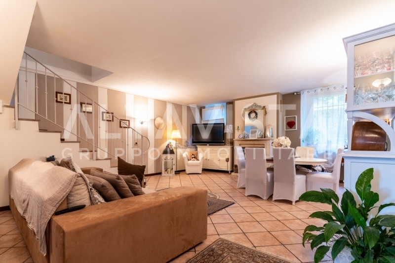 Nel centro storico di rezzato, altavista gruppo immobiliare propone un affascinante terracielo completamente ristrutturato nel 2011, dove il sapore dell'antico sposa linee contemporanee.l'ingresso condiviso con la zona taverna é un ampio portico coperto, preludio alla zona living situata al primo piano: un ambiente composto da una cucina con affaccio su balcone e un salotto spazioso, che ospita un ampio living e la zona pranzo. La zona notte, situata al piano superiore incanta con le sue travi a vista: qui troviamo due camere matrimoniali generose, di cui una dotata di una cabina armadio finestrata, e un elegante bagno con vasca angolare.un valore aggiunto della casa è la splendida taverna al piano terra, caratterizzata da alti volti a crociera in pietra: un ambiente magico inondato di luce grazie alla grande vetrata che comunica direttamente con il portico d'ingresso. Uno spazio versatile, già attrezzato con cucina, lavanderia e bagno, perfetto per ospiti o cene conviviali.completano l'offerta due posti auto riservati nella corte comune.richiesta: € 299.000,00altavista gruppo immobiliare precisa che nonostante l'attenzione nell'inserimento dei dati dell'annuncio proposto, potrebbero essere presenti errori e/o omissioni. Il presente annuncio è soltanto descrittivo e non rappresenta un impegno contrattuale, per tale motivo vi preghiamo di contattarci per verificare la disponibilità dell'immobile e dei dati inseriti. Siamo a disposizione per la visione dell'immobile previo appuntamento.