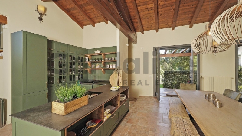 San felice del benaco - a pochi chilometri dal centro storico di san felice del benaco e da salò, offriamo un'elegante villa di recente ristrutturazione, inserita in un contesto residenziale esclusivo verde e tranquillo, di sole ville unifamiliari che condividono una piscina e campo da tennis.l'elegante villa, recentemente ristrutturata secondo un gusto raffinato e con materiali di alto livello, offre un ampio soggiorno dai colori chiari e caldi che, grazie anche alle grandi vetrate con accesso diretto al portico, rendono l'ambiente accogliente e luminoso. Al centro della stanza fa da padrone un meraviglioso camino che separa la zona relax dall'area pranzo.la cucina offre ampi spazi di lavoro ed é attrezzata con elettrodomestici all'avanguardia, senza rinunciare all'eleganza e design. Alle spalle della cucina, un comodo ripostiglio sottoscala funge da dispensa.pratiche scale interne in legno conducono alla fantastica terrazza abitabile con scorci di vista lago, contraddistinta da un pergolato, dove poter godersi le calde serate estive in relax o in compagnia di amici.la zona notte offre una camera padronale con bagno finestrato en suite, completamente ristrutturato e contraddistinto da una meravigliosa doccia walk in. Il piano si completa con altre due camere da letto ed un secondo servizio, anch'esso finestrato.il piano interrato si compone di due ulteriori camere da letto matrimoniali, un bagno con doccia ed un locale oggigiorno utilizzato come lavanderia.la villa é circondata da un grande e verdeggiante giardino esclusivo ben curato, nel quale la privacy é garantita.allo stesso tempo, per chi lo desiderasse, a disposizione dei proprietari del villaggio vi é un'area comune comprendente la piscina, un campo da tennis ed uno da bocce, pallavolo/calcio, area barbecue e prato.la soluzione é ideale sia per coloro che desiderano acquistare una prima casa in un contesto esclusivo senza rinunciare alla vicinanza ai servizi e al centro di san felice, sia come investimento in una delle aree più rinomate del lago di garda.