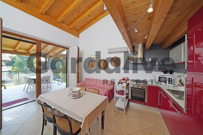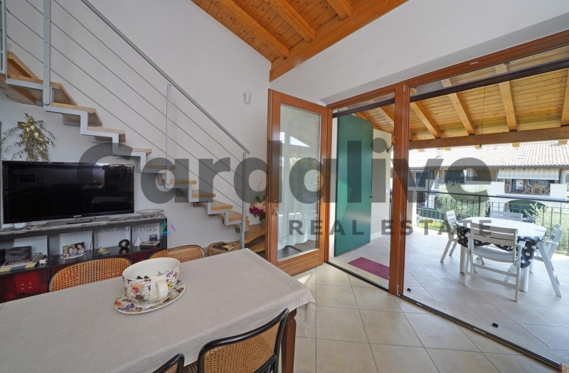 A lugana di sirmione, a due passi dal lungolago, proponiamo in vendita uno splendido appartamento al primo piano in residence esclusivo con piscina fronte spiaggia. il residence, perfettamente curato, è dotato di una notevole piscina rinnovata recentemente, circondata da uno spazio verde ben mantenuto. La posizione è comodissima per raggiungere velocemente ristoranti, negozi e tutti i servizi offerti dalla zona.l'appartamento di testa, libero su tre lati, si raggiunge tramite scale coperte, condivise da sole due unità. La deliziosa terrazza abitabile coperta introduce alla zona giorno con cucina a parete. Un pranzo sulla terrazza vista lago in famiglia o con gli amici è una vantaggio non da poco. Il disimpegno conduce alla comoda camera matrimoniale con accesso al terrazzo, allo spazioso bagno con porta finestra e doccia e a un pratico ripostiglio. Tornando alla zona giorno, graziose scale danno accesso all'ampio soppalco con finestra, utilizzato come ulteriore zona notte per ospiti, figli o nipoti. L'appartamento è dotato di soffitto mansardato e dispone di aria condizionata.completa la proprietà un ottimo garage doppio con due entrate, comodissimo per ospitare auto e biciclette.