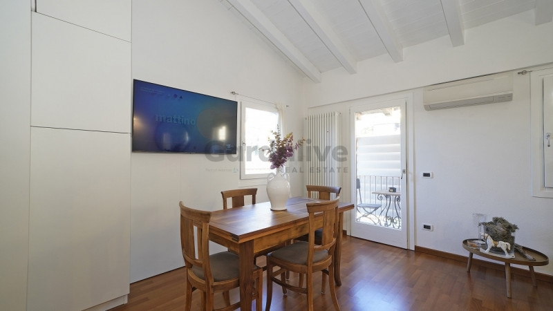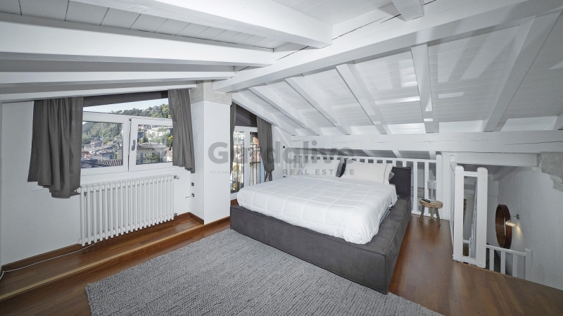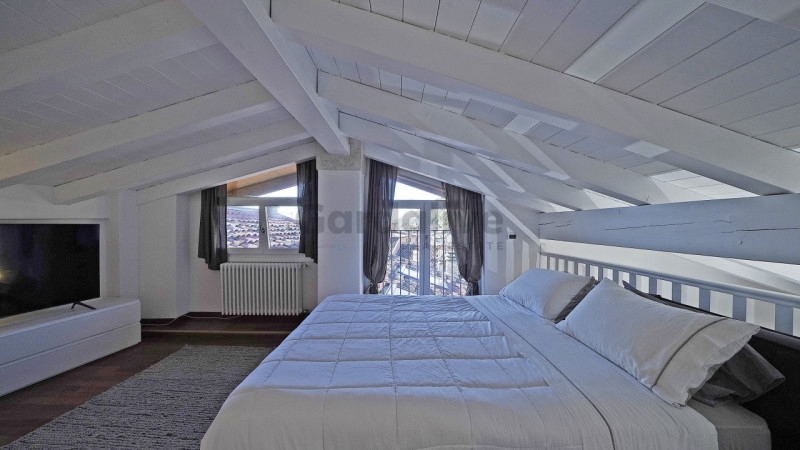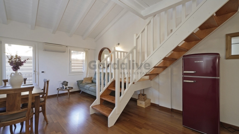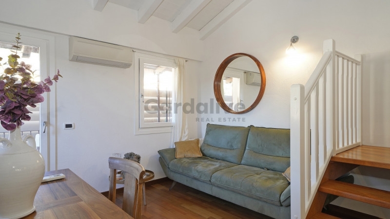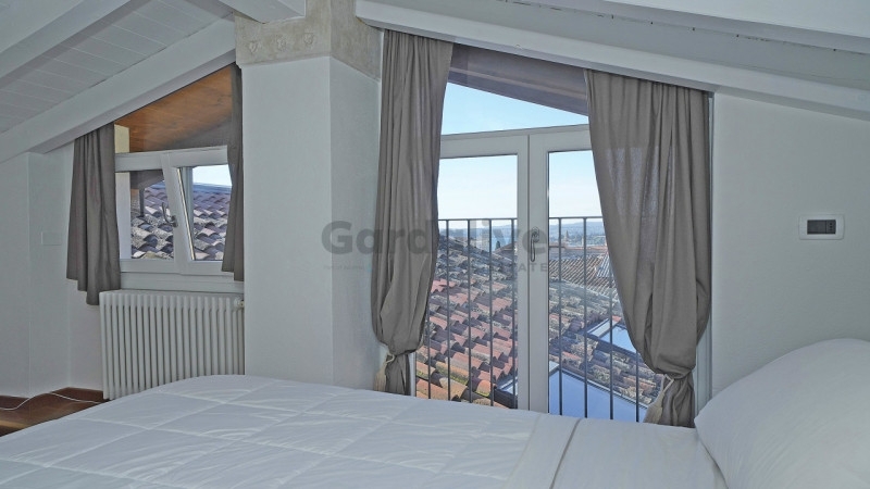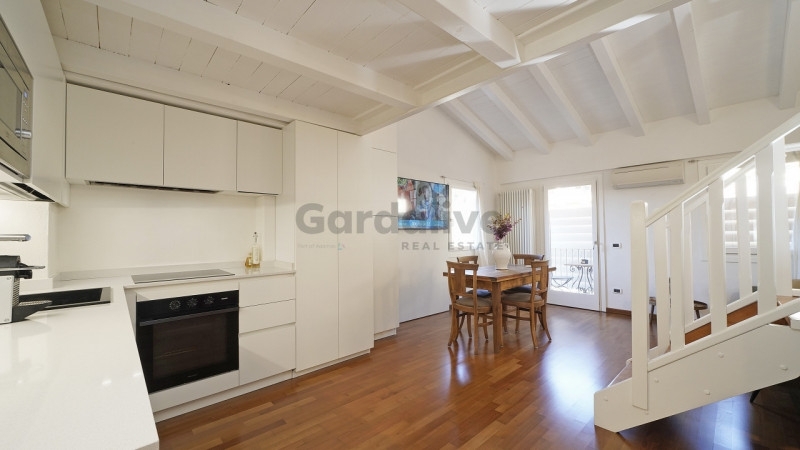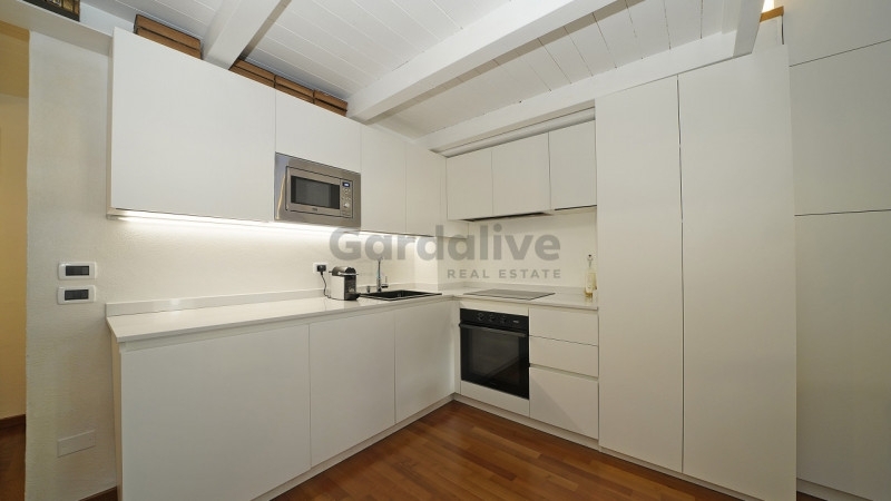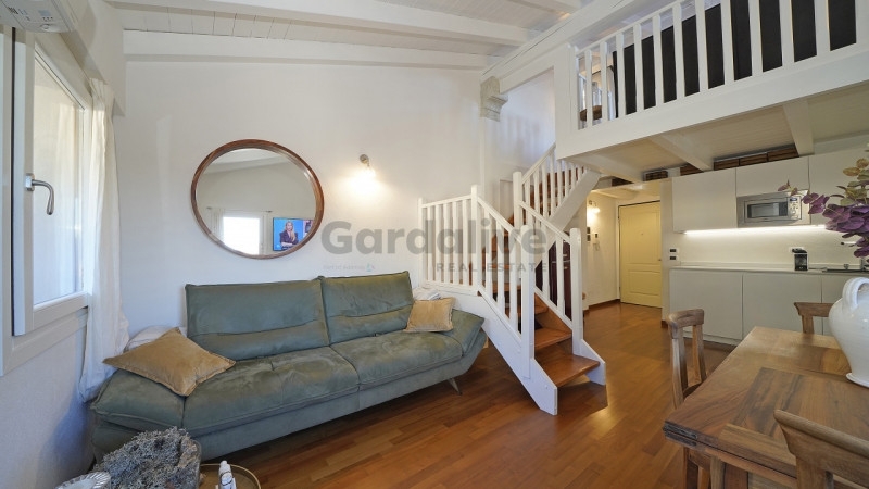 Toscolano maderno nel cuore del centro storico, a pochi passi dal lago e dai principali servizi, proponiamo in vendita un luminoso bilocale con balcone e vista lago, recentemente ristrutturato.situato all'ultimo piano di un palazzo storico finemente restaurato, l'appartamento conserva tutto il fascino dell'epoca, armoniosamente integrato con elementi moderni. L'edificio è servito da un elegante ascensore in vetro che unisce praticità e raffinatezza.l'abitazione, unica nel suo genere, è stata oggetto di una ristrutturazione accurata e arredata con gusto, con mobili su misura e finiture di pregio. La zona living, luminosa e accogliente, ospita una cucina a vista dal design contemporaneo; il soffitto con travi bianche amplifica la luce naturale, creando un'atmosfera raffinata e rilassante. Dal soggiorno si accede al balcone privato, da cui si gode una splendida vista panoramica sul pittoresco borgo e sul golfo di maderno.sul piano soppalcato, la zona notte mansardata, impreziosita da due ampie finestre che incorniciano uno scorcio suggestivo del lago di garda, regala un ambiente intimo e riservato.completa la proprietà una comoda cantina, ideale come spazio di deposito.grazie alla posizione privilegiata, vicina al lago, alla spiaggia e a tutti i principali servizi, questa residenza rappresenta la soluzione perfetta sia come casa vacanze che come investimento di pregio.un rifugio esclusivo, curato nei dettagli, dove storia e modernità si incontrano con vista sul lago di garda.