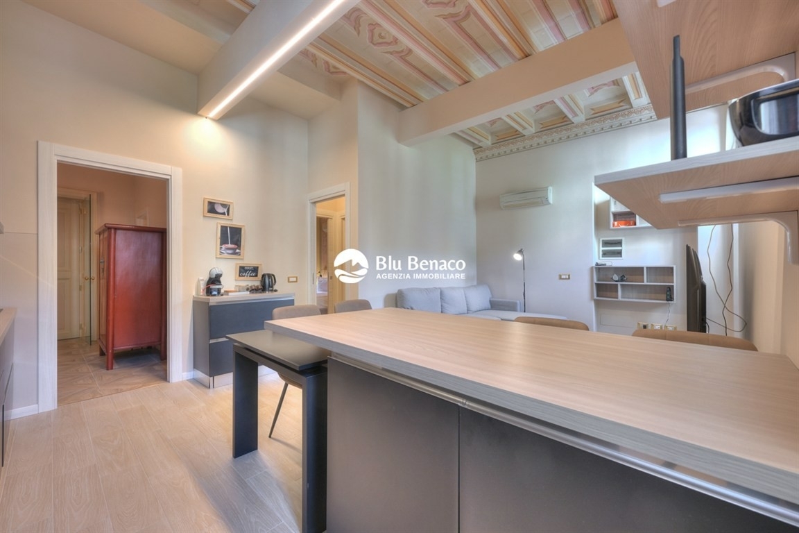 Blu benaco immobiliare propone in vendita un delizioso appartamento bilocale a pochi passi dalle spiagge più belle di toscolano e vicinissimo a tutti i servizi del paese.l'appartamento, situato al primo piano di un tranquillo edificio storico del 1700, si trova a breve distanza dalle spiagge e dalla suggestiva passeggiata panoramica che parte dal sito archeologico di toscolano e arriva al 'lido degli ulivi'.questa rara gemma, impreziosita da affreschi originali restaurati nel 2009, è composta da due ampi vani e un bagno. l'immobile, situato al primo piano con accesso da scala privata, si apre su un elegante disimpegno d'ingresso che introduce armoniosamente agli ambienti interni. La zona giorno, con angolo cottura perfettamente integrato, è studiata per offrire comfort e funzionalità in un contesto raffinato e accogliente. La zona notte comprende un'ampia camera matrimoniale, tranquilla e ben proporzionata, mentre il bagno, curato nei dettagli, completa la proprietà. L'intero appartamento è valorizzato da finiture ricercate e da un arredo elegante, che ne esalta il carattere storico senza rinunciare alla modernità e al comfort. la sua posizione invidiabile permette di vivere appieno il meglio di toscolano, con le sue affascinanti stradine, i negozi caratteristici e tutti i servizi a portata di mano. Questo bilocale rappresenta una straordinaria opportunità per possedere un pezzo di storia, arricchito da tutte le comodità contemporanee, ideale sia come abitazione che come investimento per locazioni stagionali. non perdere l'occasione di vivere in un luogo dove passato e presente si incontrano in modo armonioso e affascinante. Contattaci oggi stesso per maggiori dettagli e per organizzare una visita esclusiva.