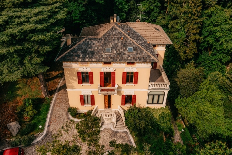 Brunate - como, proponiamo splendida villa d'epoca in stile liberty di inizio '900, la villa fu fatta costruire tra il 1911 e il 1912 da antonio franceschini di milano, su progetto dell'ingegner giulio valli di como, la villa presenta sul fronte verso brunate due terrazze sovrapposte, di cui quella inferiore venne trasformata più tardi in veranda.di notevole raffinatezza è la decorazione floreale che si attesta sui cappucci delle finestre, ora semplici ora binate, sul fregio dipinto che corre sotto la gronda con un elegante motivo a margherite, nella doppia scalinata d'ingresso e nei ferri battuti del cancello. Negli anni la villa passò dalla famiglia franceschini ai viganò e successivamente alla famiglia borghi, da qui il nome di 'villa franceschini viganò borghi', sita in posizione panoramica alla fine di una via privata, ciò permette una assoluta riservatezza, la proprietà si trova a pochi passi dalla funicolare che collega brunate a como in pochi minuti. La villa si sviluppa su quattro piani per un totale di circa 540 mq. Oltre a autorimessa esterna per quattro autovetture realizzata in fase di ristrutturazione della proprietà. La proprietà è dotata di una cisterna interrata per la raccolta dell'acqua piovana, utilizzabile per innaffiare l'ampio parco secolare di circa 3.600 mq. completamente e finemente restaurata nel 2006 con recupero degli affreschi e delle finiture originali sia all'esterno che all'interno della proprietà, la ristrutturazione ha interessato anche tutti gli impianti interni ma ciò non ha pregiudicato la possibilità di mantenere tutta quella parte in legno, vecchia di oltre 100 anni, della struttura, lasciando inalterato il fascino dello stile dell'epoca.a brunate si trovano negozi, ristoranti e caffè, e grazie alla sua posizione unica è anche chiamato il balcone sulle alpi. Dal paese si può vedere la città di como e il lago, fino alla pianura padana e nelle giornate limpide dalla proprietà si possono scorgere i grattacieli della città di milano.la storia di brunate inizia in tempi antichissimi con i celti e gli etruschi. Dopo alcuni secoli nella sottostante pianura si cominciarono a costruire capanne, fino all'arrivo dei romani che risanarono il suolo, fondarono la città e crearono mura e torri. Nel medioevo brunate si costituù a libero comune (seconda metà del xii secolo) ma la sua indipendenza fu di breve durata, risultando nel 1240 di nuovo annessa a como. All'inizio del 1800 il paese era formato da poche case e qualche villino, ma nella seconda metà del secolo divenne luogo di villeggiatura, grazie al suo clima, alla sua posizione geografica e ai meravigliosi panorami. Fino alla seconda metà dell'ottocento, brunate era rimasto un piccolo paese di montagna, isolato dalla sottostante città, luogo ideale di romitaggio. Fu solo nel 1817, anno di dura carestia, che venne realizzata la mulattiera, chiamata via delle scalette, che dalla città conduceva a brunate. Quasi mezzo secolo più tardi, venne realizzata anche una carrozzabile, che contribuù in maniera determinante a rompere l'isolamento. Ciò che però trasformò radicalmente brunate fu la realizzazione della funicolare pensata inizialmente più per incentivare il turismo che come mezzo di trasporto per gli abitanti. Ed è proprio per questo infatti che, tra la fine del '800 e i primi del '900, ci fu un'intensa attività edilizia allo scopo di costruire ville ed alberghi, la maggior parte delle quali venne eretta in forme eclettiche o liberty.casamatta partner loserimm