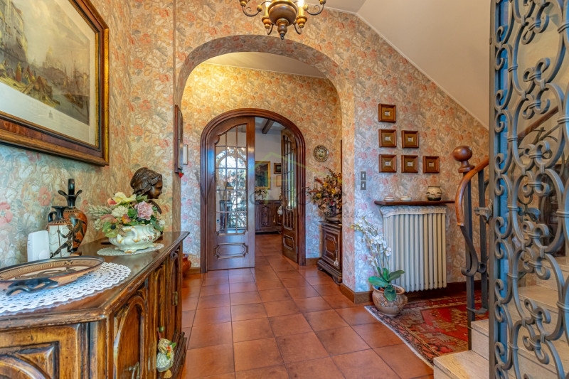 In una delle zone più belle di cantù proponiamo particolare villa indipendente, ricca di sapore e di charme e impreziosita da un'architettura che ricorda i vecchi chalet di montagna.questa villa edificata dagli attuali proprietari in uno dei punti più collinari e panoramici della città presenta una facciata rifinita con pietra e legno ed è evidente la cura dei dettagli attraverso un gusto classico ma allo stesso tempo ricercato.la villa si trova all'interno di un lotto di circa 550 mq ed è composta in due piani fuori terra oltre a un piano mansardato e uno seminterrato ad uso accessorio, la superficie interna totale è davvero importante risultando complessivamente superiore ai 400 metri quadrati:al piano rialzato, varcato un affascinante portone ad arco in ferro battuto si presenta un ampio ingresso che oltre ad accogliere l'ospite, permette di identificare cosa offre la casa: troviamo infatti una scala a salire, una a scendere, e un doppio portone ad arco in legno e vetro verso l'ampio salone.il salone, caratterizzato da travi in legno a vista, è di metratura generosa tanto che attualmente ospita un'ampia area pranzo, un salottino da conversazione e una confortevole area divano con imponente camino a legna, da questa zona abbiamo una comoda uscita sul riservato giardino sul retro; il piano è poi completato da un'ampia cucina abitabile con parquet in rovere con posa a spina italiana e un bagno di servizio finestrato.il piano primo, come detto collegato dall'androne con ampia scala in muratura, presenta 3 ampie camere, tutte di metratura generosa, e due bagni oltre a un balcone, da segnalare da questo piano una vista panoramica sulla brianza davvero invidiabile.il piano mansardato, di par superficie a quelli sottostanti, è stato solo in parte sfruttato ad uso ufficio/archivio ma anch'esso è impreziosito da un balcone con una vista ancor più bella di quella del piano inferiore.il piano seminterrato si presenta come un ampio spazio open space/autorimessa, viste le ampie dimensioni è possibile valutarne un utilizzo parzialmente differente.l'intera proprietà è in ottime condizioni di manutenzione, anche il giardino è piantumato e facilmente sfruttabile.proprietà consigliata a chi apprezza i dettagli e lo stile classico, ed è disposto a valutare negli anni alcuni interventi di ristrutturazione conservativi che non privino la casa delle sue caratteristiche che gli donano un'eleganza senza tempo. Date le superfici generose, sicuramente superiori al fabbisogno di una famiglia media, può essere facilmente convertita a soluzione per due famiglie.libera subito.