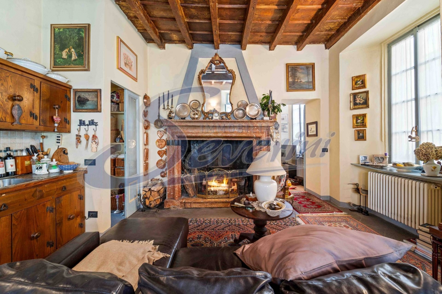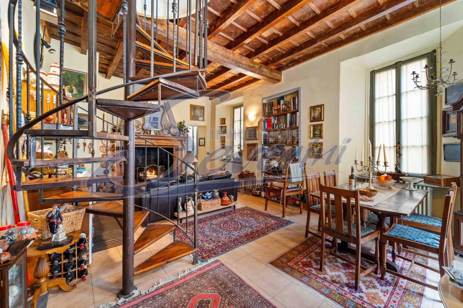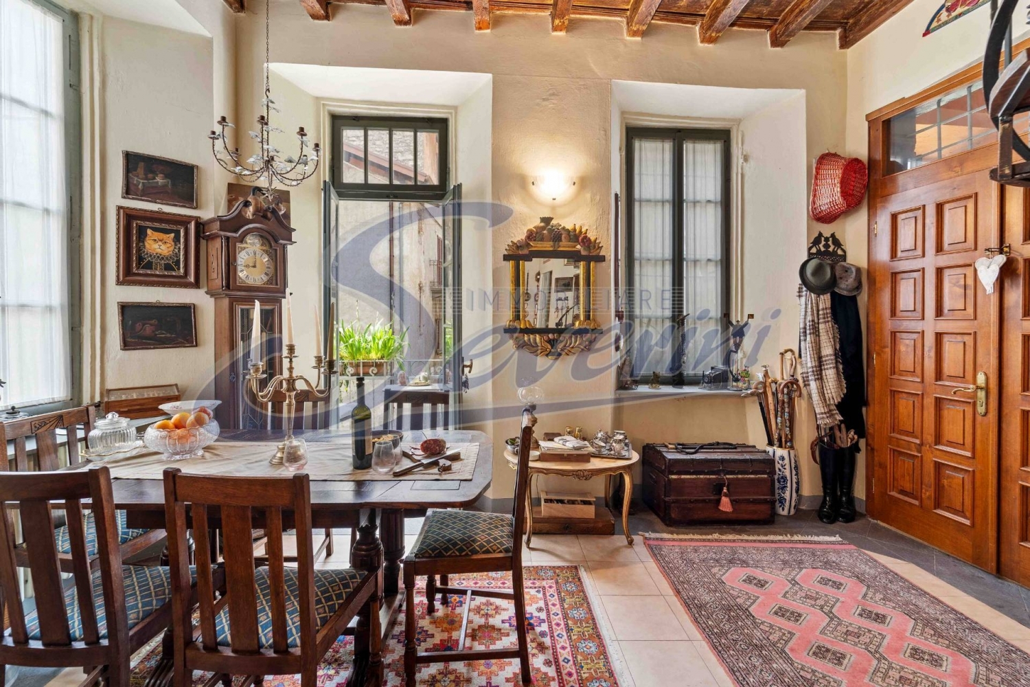 Colonnol'appartamento è ricavato in un antico palazzotto del 1400, chiamato dagli abitanti di colonno, 'la pretura', perchè sede del tribunale e abitazione del giuriconsulto, più alta autorità del luogo. Il paese in futuro sarà ancora meglio servito per la viabilità, grazie alla galleria in costruzione che lo isolerà dal traffico automobilistico che comunque non è fastidioso. Infatti la casa è ubicata al centro del paese, sul lago e poco lontano dalla chiesa, vicino all'ormeggio della battello che serve le principali località lacustri. Il parcheggio pubblico dove si può facilmente trovare un posto macchina è nella piazza principale che è a mt 50 dalla casa.la casa è ubicata a mt 20 dal lago e ha facile accesso alla riva ed è divisa in 4 appartamenti; la porzione in vendita cielo-terra e l'appartamento è stato recentemente ristrutturato mantenendone le antiche caratteristiche, come il soffitto in travi di legno, ma dotato comunque di televisione in tutti i locali, impianto di riscaldamento autonomo programmabile, tetto nuovo con antiche travi in legno.l'abitazione in vendita sviluppa circa 150 mq divisi al piano primo una grande sala con angolo cottura e terrazzino con vista , camera matrimoniale , salottino tv, antibagno e bagno finestrato; al secondo piano , collegata internamente alla sala del primo con artistica scala in ferro a chiocciola, una seconda camera matrimoniale e terrazzino con vista. Non direttamente collegati con l'appartamento princicipale , con accesso alla scala condominiale, al piano terra si trovano un locale lavanderia e con ampia finestra e un locale legnaia per circa 20 mq e al terzo piano, soprastante l'appartamento , una grande mansarda finestrata, composta da due locali di totali mq. 80 circa utilizzabili come studio, palestra o altro secondo le esigenze. I locali sono arredati con mobili d'epoca che vengono ceduti compresi nel prezzo di acquisto; su richiesta si cede un piccolo gozzo ormeggiato nel porticciolo del paese ubicato poco lontano dalla casa.