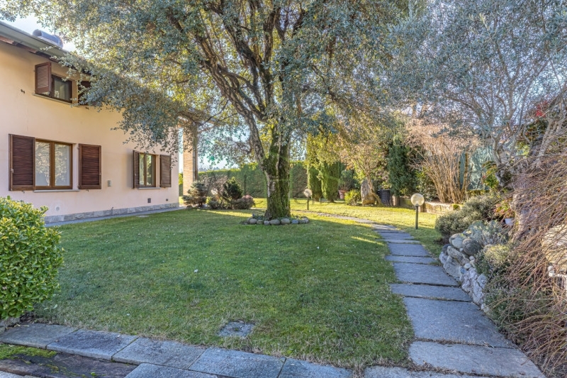 A montorfano, piccolo e verde paese alle porte di como, noto per il suo lago balneabile e per la presenza del prestigioso circolo golf villa d'este, proponiamo ampia villa singola inserita in un residence esclusivo e altamente signorile.la proprietà fa parte di un contesto riservato di sole 14 ville, pensato per garantire privacy, tranquillità e sicurezza. Edificata nei primi anni 2000 su un lotto di oltre 1.000 mq, la villa è stata ristrutturata internamente nel 2024, con finiture eleganti e soluzioni abitative attuali.la zona giorno è progettata per vivere gli spazi in continuità: l'area living ospita comodamente più divani, mentre la zona pranzo, pensata per accogliere un grande tavolo, è impreziosita da ampie portefinestre che creano un dialogo diretto con l'esterno. Da qui si accede a un portico coperto, vero prolungamento della casa durante la bella stagione, ideale per pranzi, cene e momenti di relax all'aperto. A completare l'ambiente, una zona più raccolta attorno al camino, che rende l'atmosfera calda e accogliente anche nei mesi invernali.la cucina abitabile, separata da una raffinata porta in vetro rimadesio, è un ambiente a sé, funzionale ma di grande impatto estetico, arredata poliform e completata da un tavolo perfetto per la quotidianità. Sempre su questo livello troviamo un bagno di servizio con finiture effetto marmo e una camera matrimoniale comoda e riservata, dotata di armadiatura a muro e bagno en suite con doccia, ideale anche come suite per ospiti o come camera padronale al piano. Questo piano è stato completamente ristrutturato nel 2024 anche per la parte impiantistica e dispone di riscaldamento a pavimento e aria condizionata.il piano superiore ripropone la stessa generosità di spazi e colpisce per il carattere caldo dato dalle travi a vista. Qui si sviluppano tre camere di ampia metratura, ben distribuite e servite da due bagni finestrati con doccia. A completare il piano, un ulteriore ambiente oggi utilizzato come zona lettura o studio, estremamente versatile: può facilmente diventare una quarta camera oppure, realizzando una cucina, trasformare l'intero piano in un appartamento semi-indipendente, soluzione ideale per famiglie numerose, genitori-figli o per chi desidera un'abitazione con doppia unità.il piano seminterrato aggiunge valore e funzionalità alla villa, offrendo spazi accessori difficili da trovare. Qui troviamo una grande taverna con bagno dedicato, perfetta come zona hobby, palestra o spazio conviviale, oltre a una comoda lavanderia e alla centrale termica. Il collegamento diretto con il box di circa 100 mq rende questo livello particolarmente pratico: un'autorimessa in grado di ospitare comodamente 3 o 4 auto, oltre a moto, biciclette e tutto ciò che serve a una casa di questo livello.l'area esterna che circonda la villa sui quattro lati è stata pensata come una naturale estensione degli spazi interni. Il portico, direttamente collegato alla zona pranzo tramite ampie portefinestre, diventa un vero e proprio soggiorno all'aperto, ideale da vivere dalla primavera all'autunno. Il giardino, in gran parte piantumato, garantisce privacy e riservatezza e offre lo spazio ideale per la realizzazione di una piscina, perfettamente integrabile nel contesto. All'ingresso, una splendida quercia da sughero accoglie gli ospiti, mentre un comodo piazzale completa l'esterno offrendo pratici posti auto di cortesia.una soluzione importante, elegante e versatile, ideale per chi cerca spazio, privacy e qualità abitativa in uno dei contesti più richiesti dell'area di como.