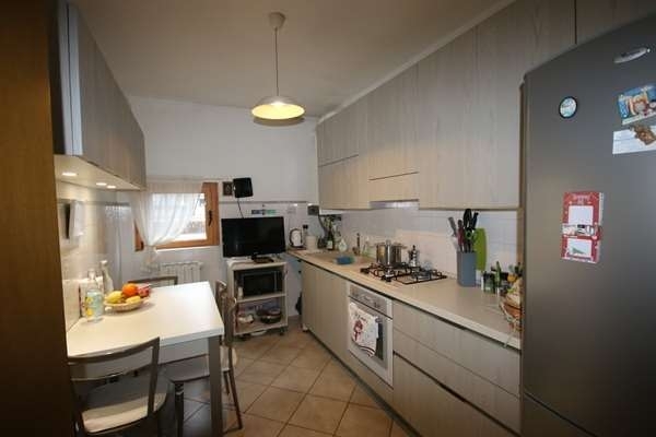 Trilocale in palazzina posto al primo piano con soggiorno che affaccia sul balcone, cucina ( possibilità di realizzare un ampio unico locale), ampio corridoio che porta a due camere da letto e bagno con vasca e doccia e attacco per la lavatrice. Infissi nuovi con zanzariere e caldaia recentissima, cosù come il videocitofono. Completa la proprietà una comoda cantina al piano seminterrato e una spaziosa autorimessa. classe energetica: c 128 kwh/m3 a