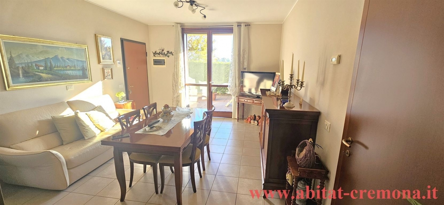 Proponiamo in vendita un accogliente appartamento caratterizzato da spazi funzionali e ottima vivibilità. L'ingresso si apre su un luminoso soggiorno, collegato direttamente a un giardino privato ideale per momenti di relax all'aperto. La cucina, separata e abitabile, dispone di un secondo accesso a un ulteriore giardino esclusivo, perfetto per pranzi e cene all'esterno.la zona notte comprende una confortevole camera da letto e un bagno. Completa la proprietà un comodo ripostiglio con accesso diretto al garage singolo. L'immobile è rifinito con pavimenti in gres porcellanato ed è dotato di climatizzatore. Soluzione ideale per chi cerca comfort, privacy e spazi esterni.la nostra agenzia opera sul territorio cremonese da oltre 25 anni con professionalità e serietà, segue compravendite ed affittanze di ogni tipologia di immobile, con particolare attenzione all'espletamento di ogni pratica burocratica. Manteniamo il massimo aggiornamento riguardo tutte le novità fiscali/legislative in materia. Offriamo serietà e professionalità nell'assistenza alle compravendite immobiliari di ogni tipo, gestione locazioni residenziali e commerciali. La nostra missione è quella di dare una copertura a 360° al cliente, seguendolo fin dai primi contatti sino al passaggio di proprietà. Mettiamo a disposizione dell'acquirente la nostra ventennale esperienza consigliandolo sulla eventuale parziale o totale ristrutturazione dell'immobile, collaborando con diversi artigiani locali. Le illustrazioni e le descrizioni presenti in questo annuncio possono contenere degli errori e/o omissioni e non hanno in nessun modo valore contrattuale.