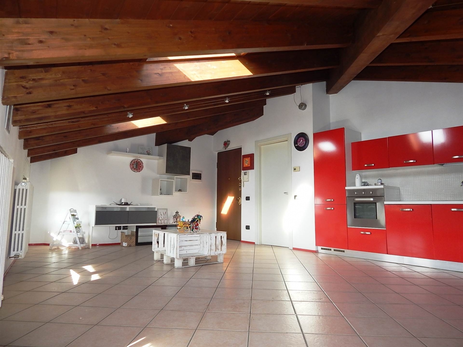 In zona centrale e comoda con tutti i principali servizi, ampio bilocale di 73 mq mansardato con ascensore, molto luminoso e parzialmente arredato, cosi composto:ingresso, ampio soggiorno con cucina a vista, camera matrimoniale e bagno.libero subito e pochissime spese condominiali.riscaldamento autonomo in ghisa, pavimentazione in monocottura, serramenti in legno e vetro doppio.box singoloclasse energetica da.f.immobiliare srl di renate via dante 6 - tel mail: - sito internet: classe energetica: d