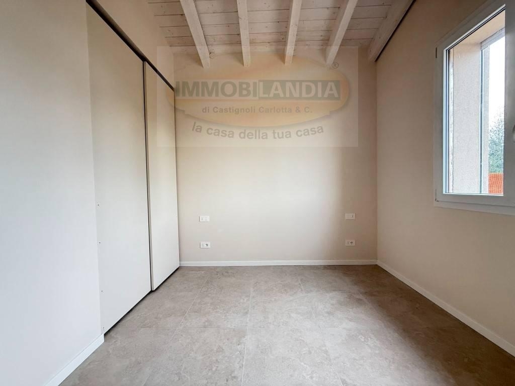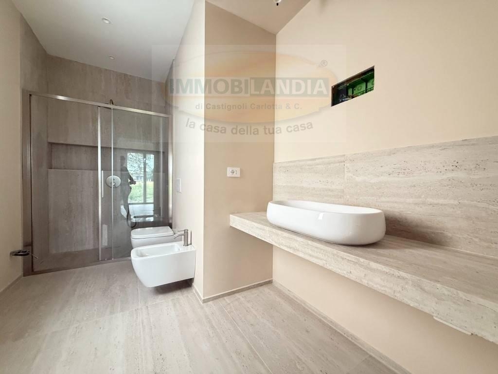 A partire da ? 349.000, in fase di costruzione, immerse nel meraviglioso parco adda sud, disponiamo di ville bifamiliari in costruzione, in classe energetica a. Le unità immobiliari si sviluppano su un unico livello abitativo per un totale di 110 mq e sono cosù composte: entrando troviamo la luminosa zona giorno con travi a vista, con soggiorno e cucina abitabile, con ampie vetrate che consentono l' accesso al giardino privato; abbiamo poi la zona notte con una camera matrimoniale con bagno en-suite, due camerette e secondo bagno. Completano la proprietà un comodo box ed un'area esterna di proprietà di 142 mq.l'immobile è dotato di riscaldamento autonomo a pavimento con pompa di calore, serramenti interni doppio vetro pvc, tapparelle in alluminio motorizzate, predisposizione impianti di condizionamento caldo/freddo e allarme, predisposizione zanzariere; il complesso inoltre disporrà di comode colonnine per la ricarica delle auto elettriche ed una predisposizione al servizio di videosorveglianza.possibilità di scelta finiture interne.