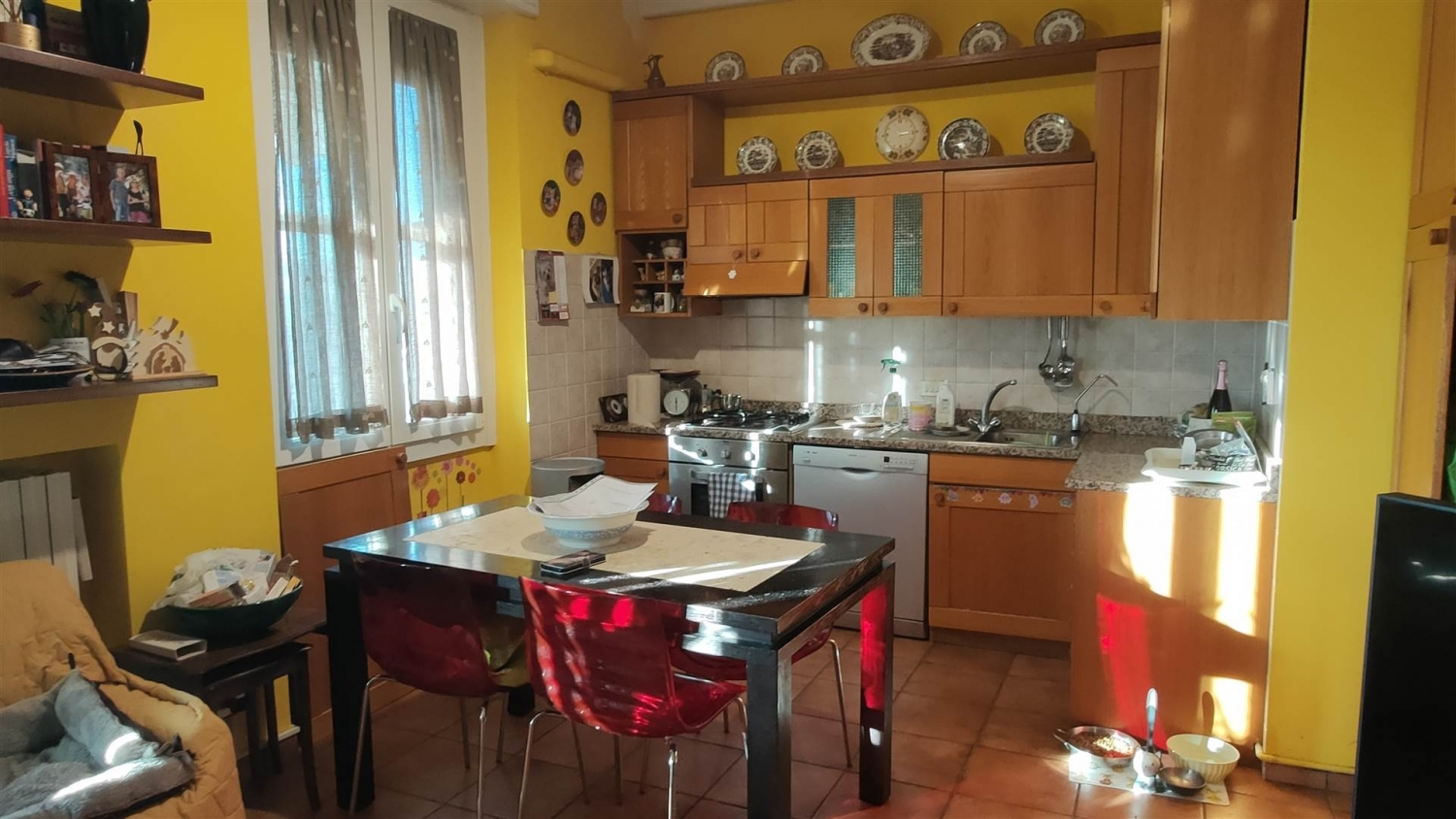 In centro paese bello e luminoso trilocale semiarredato con balcone e cantina. L'immobile è composto da: ingresso direttamente in soggiorno con cucina a vista con l'uscita sul balcone, disimpegno, 2 camere ed 1 bagno. A completamento vi sono le tende da sole, le zanzariere, l'aria condizionata e l'ampia cantina al piano sem:interrato. pro: immobile ristrutturato, tranne il bagno; è stato effettuato il 110%; fotovoltaico; centro paese..contro: piano secondo senza ascensore; bagno sistemato non di recente. classe energetica: a1