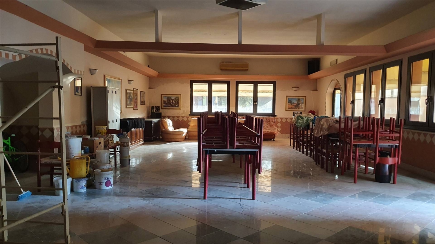 In una via trasversale al centro di marmirolo , in zona di espansione sia residenziale che industriale, l'agenzia baratti, filiale di mantova , offre un'occasione imperdibile di affitto di attività ristorativa , attualmente chiusa , da rilanciare sul mercato privo di un ristorante nella zona .l'immobile comprende:piano interrato: una grande cantina per il carico-scarico; piano terra: ristorante composto da una sala grande, una zona bar, la cucina, la zona del forno a legna pizzeria, wc idonei per disabili, guardaroba, locale dispensa, grande porticato e una piattaforma esterna ( che sarebbe il tetto della cantina) dove attualmente vi è un gazebo ma che verrà tolto perchè toglie visibilità all'ingresso.si tratta di un locale ad uso commerciale , con cucina completa di attrezzature, forno a legna per la pizzeria arredi e mobilio vario, dismesso per gestione familiare non congrua alle potenzialità che il locale stesso offre.l'immobile si presenta da sistemare e per tale motivo , disponibilità da parte della proprietà a venire incontro alle esigenze della nuova gestione.al piano primo troviamo un grande appartamento anch'esso in affitto , composto da un unico ambiente soggiorno cucina-pranzo , balcone e loggia oltre ad un vano studio, due camere da letto matrimoniali, un bagno padronale con vasca idromassaggio , una zona lavanderia ripostiglio e un secondo bagno con doccia. classe energetica: g epi: 76,98 kwh/m3 anno