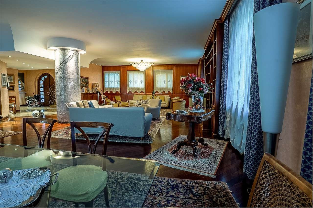 Rif: divina servizi immobiliari di seregno, piazza vittorio veneto in centro a buscate (mi) proponiamo una stupenda villa con piscina e ampio giardino, completamente ristrutturata nel 1994 con materiali di pregio e finiture di alta qualità.la villa è cosù composta:al piano terra, l'ingresso principale con pavimento in pietra naturale conduce ad un ampio e luminoso soggiorno, caratterizzato da una stupenda colonna in mosaico posata a mano, una luminosa cucina abitabile con porte finestre che si affacciano sul patio esterno, un bagno ed un bilocale con cucina e bagno separati per ospiti o familiari;al primo piano, accessibile sia con ascensore che con una scala in pietra naturale e ferro battuto, troviamo una camera padronale con bagno privato dotato di vasca idromassaggio, cabina armadio finestrata e accesso sul terrazzo privato; altre tre camere di cui una con bagno privato;al piano seminterrato è presente un'ampia taverna con cucina, bagno, due camere (di cui una matrimoniale), un locale tecnico, una lavanderia, un locale hobby ed una cantina;ampio sottotetto accessibile tramite ascensore.all'esterno abbiamo a disposizione n. 5 box auto, tutti dotati di basculante elettrica.completa la proprietà un giardino privato di 1200 mq , una tettoia in legno e mattonecon cucina estiva e una splendida piscina interrata di m 11x 5.la presente scheda non costituisce forma di contratto, le informazioni qui contenute sono da ritenersi del tutto indicative e non potranno essere utilizzate come parte integrante di un eventuale contratto di vendita o locazione della proprietà. La presente non vincola in alcun modo la società.classe energetica: e
