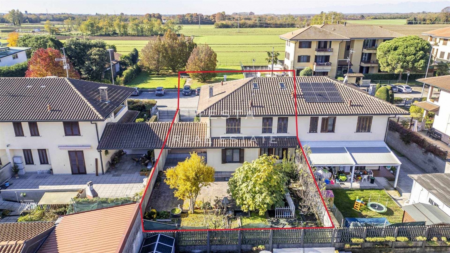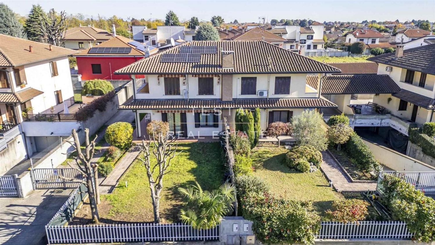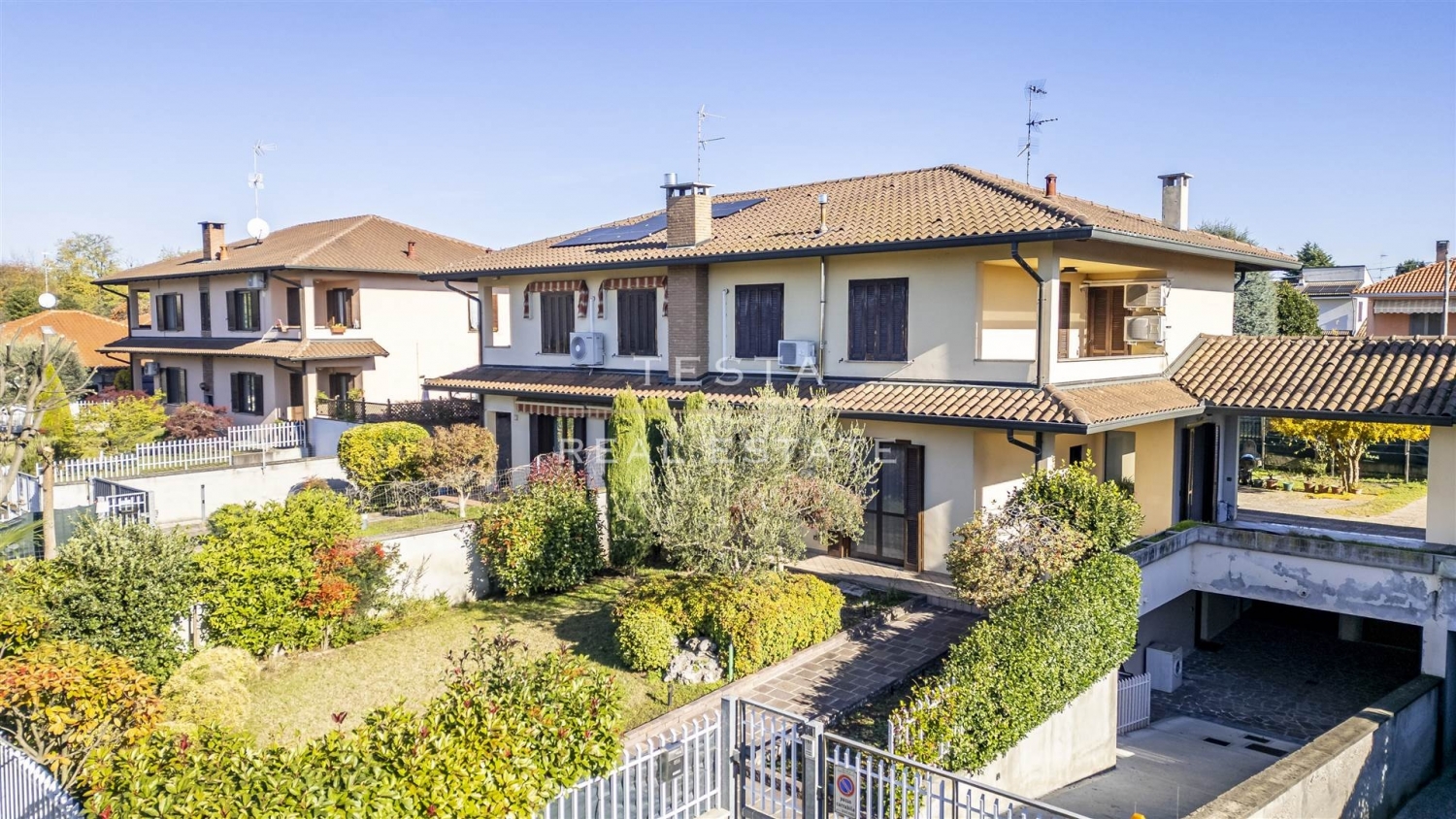 Inserita in un piacevole e tranquillo contesto residenziale, proponiamo in vendita una porzione di villa bifamiliare edificata negli anni 2000. L'abitazione si sviluppa su due livelli oltre seminterrato:- piano terra di ca. Mq. 70,00; dal vialetto che attraversa il grazioso e ben curato giardino, si giunge all'ingresso direttamente nell'ampio e luminoso soggiorno, la cucina è abitabile e accede ad un grande porticato che diventa un ulteriore spazio da vivere in ogni stagione e a un bel giardinetto molto riservato;- piano primo di ca. Mq. 75,00 con tre comode camere da letto, antibagno e bagno e balcone;- piano seminterrato di ca. Mq. 108,00 locale sgombero da poter adibire a taverna, lavanderia, ripostigli, locale caldaia e box plurimo di mq. 39,00 ca. Con doppia basculante che facilità l'accesso.dotata di tutti i confort: impianto di condizionamento, doppi vetri, caldaia a zone istallata recentemente; ben tenuta, è l'ideale per una famiglia in crescita ma anche per chi desidera avere spazi da dedicare alla propria attività o ai propri hobby. un'abitazione accogliente, funzionale e pronta da vivere! classe energetica: f
