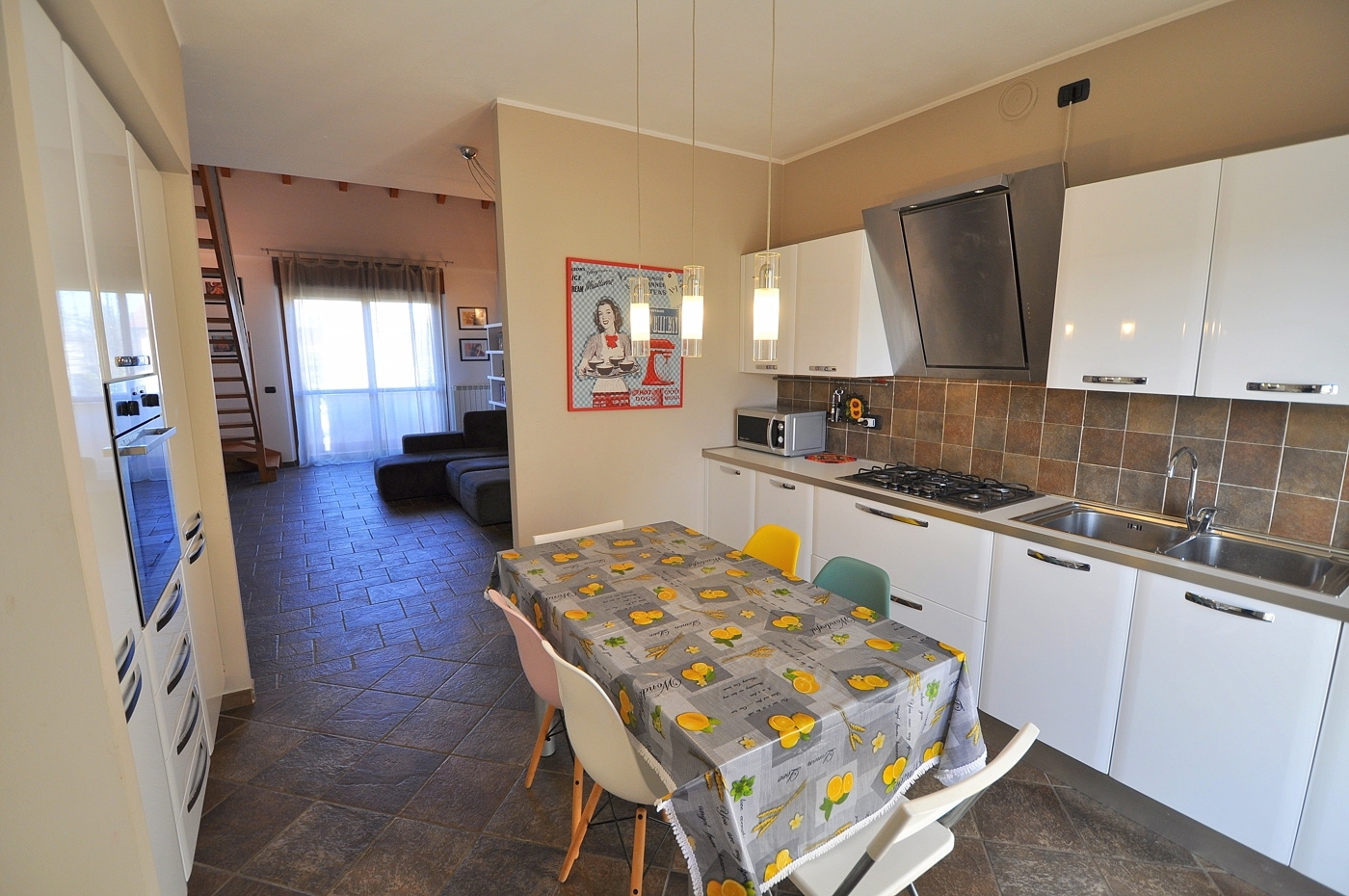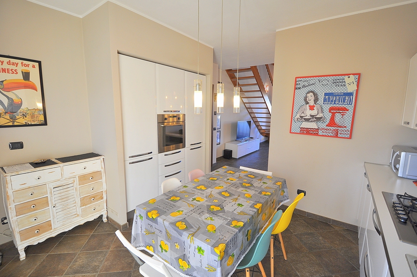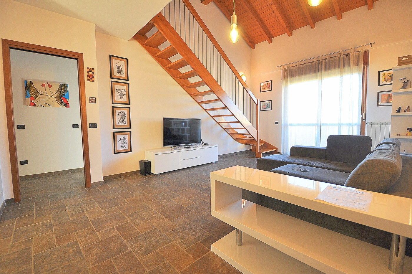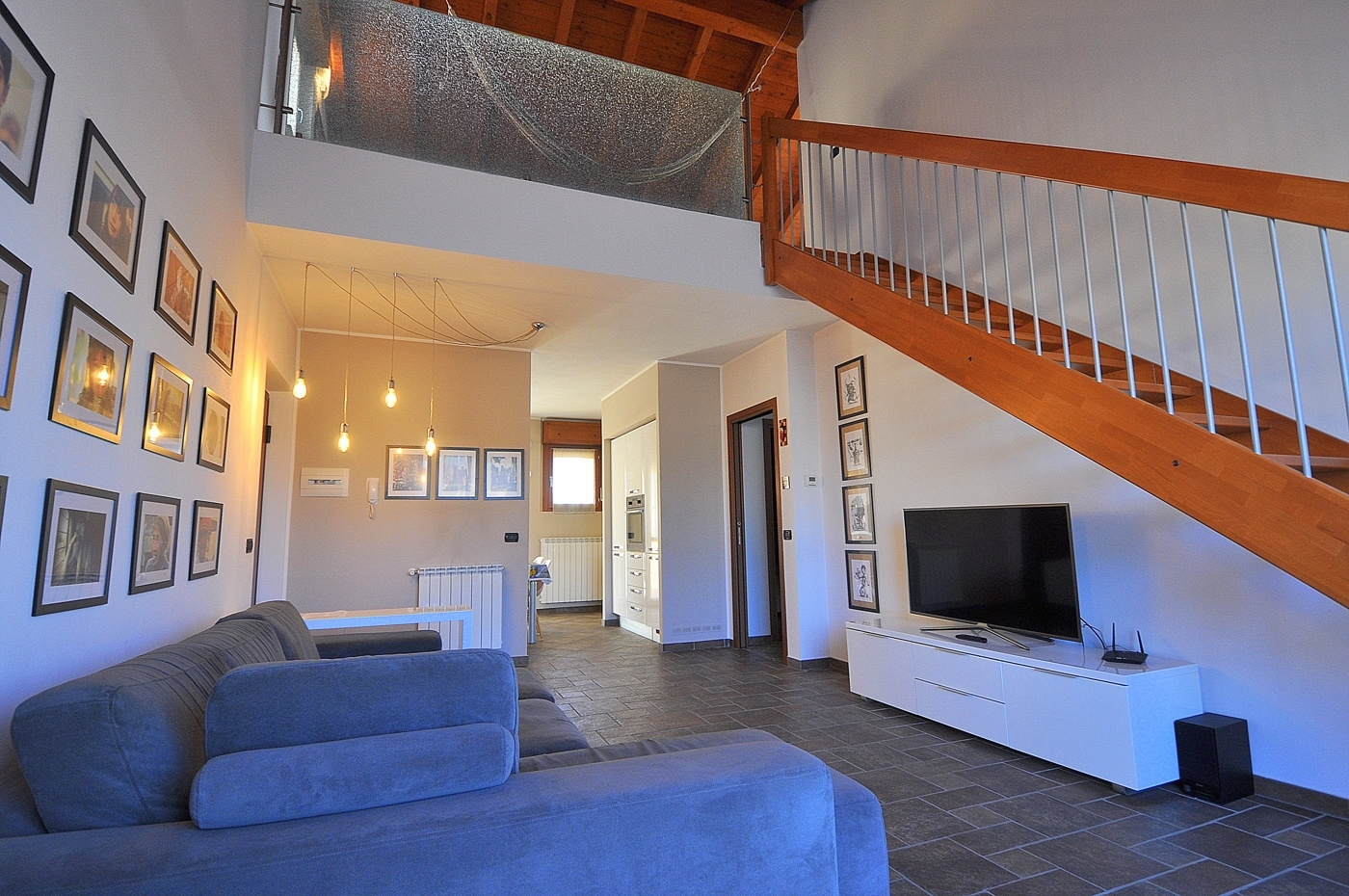 Caratteristica ed eslusiva abitazione di quattro locali con soppalco a vista posta in un piccolo contesto di sole quattro famiglie con minime spese comuni.l'appartamento e' sito al piano primo senza nessun lato abitativo in confine con altri e' composto da sala, cucina separata, due camere e bagno.dalla sala una comoda scala ci conduce all'ampio locale soppalcato a vista sulla zona giorno, dove e' possibile ricavare il quarto locale ed un altro servizio.completa la proprieta' la cantina.data la recente costruzione la casa si presenta in ottime condizioni sia strutturali che a livello di finiture.ideale per famiglie numerose oppure semplicemente per chi cerca una casa unica nel suo genere; ideale anche come forma d'investimento dato che e' affittata regolarmente con affitti brevi ed ottimi guadagni (8 % annuo)ampio box doppio proposto ad euro 20.000