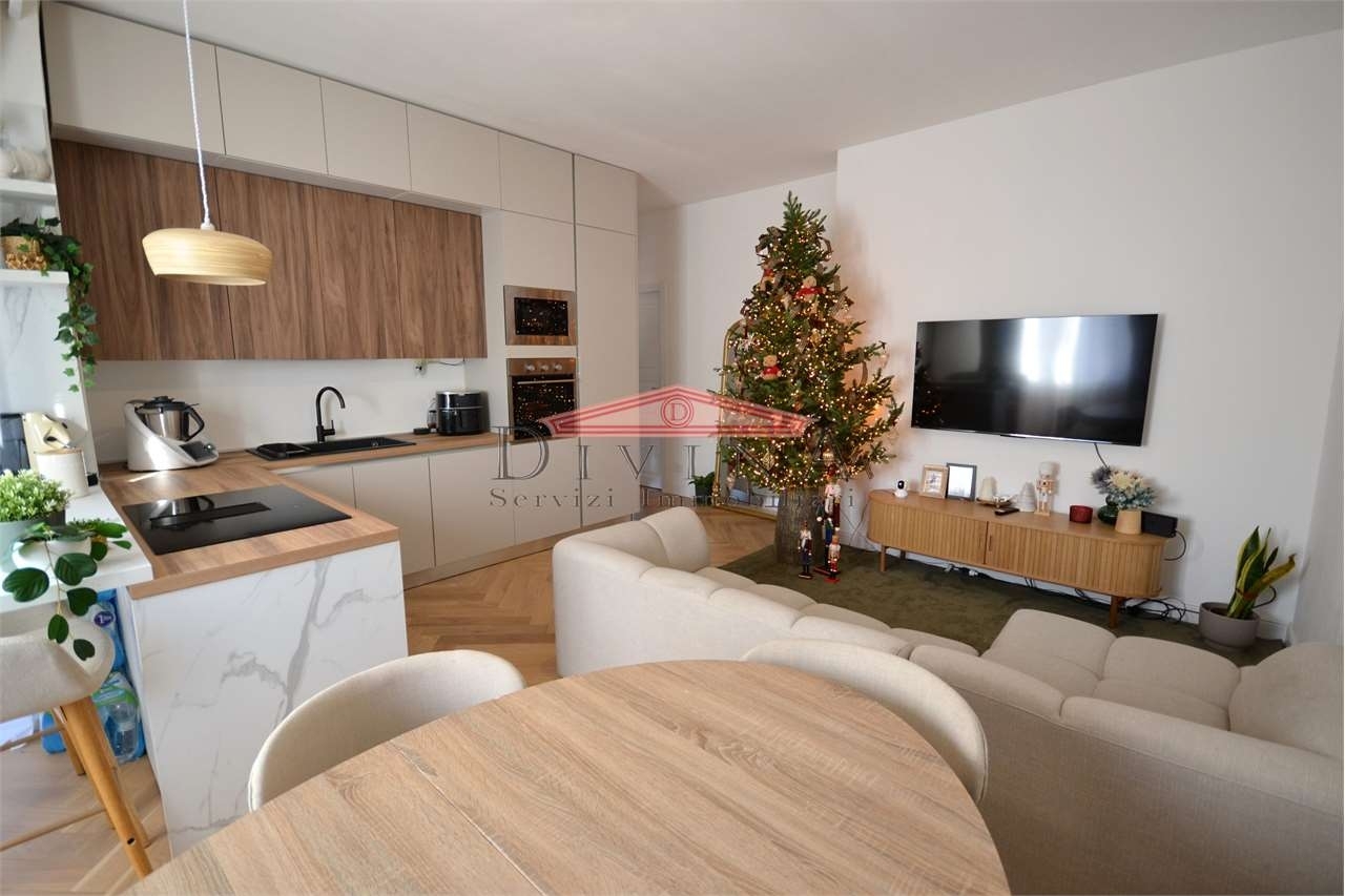 Paderno dugnano zona residenziale vicinanze stazione fnmin signorile contesto condominiale proponiamo esclusivo appartamento ristrutturato con finiture di pregio situato al settimo e ultimo piano.questo raffinato appartamento offre ambienti luminosi e spaziosi, progettati con attenzione ai dettagli:la zona giorno si sviluppa in un open space, dove il soggiorno, la cucina a vista, la zona salotto e la zona pranzo si fondono armoniosamente in un ambiente luminoso e accogliente, ideale per momenti conviviali e cene in compagnia, camera da letto matrimoniale accessoriata di cabina armadio con porta di ingresso a specchio, seconda camera da letto, terza stanza versatile, perfetta come studio o terza camera, bagno padronale con pavimentazione continua in lastre di gress porcellanato effetto marmo calacatta levigato formato grande, doccia realizzata con un cristallo trasparente a tutta altezza soluzione 'walk-in', secondo bagno/lavanderia, ripostiglio, ampio balcone panoramico, locale cantina la piano interrato e locale solaio.dettagli ristrutturazione:pavimento in pregiato parquet in rovere naturale posa a spina ungherese (chevron) in tutti gli ambientiporte bianche laccate a bugne rettangolariimpianto elettrico nuovo con placche living now touchimpianto idraulico nuovodomotica di baseimpianto aria condizionata e pompa di calore a splitinfissi in pvc doppio vetro (in fase di sostituzione dal proprietario)termosifoni a gestione valvole termostaticheun'opportunità unica per chi cerca eleganza, comfort e una posizione privilegiata.possibilità acquistare il boxclasse energetica: in fase di valutazione