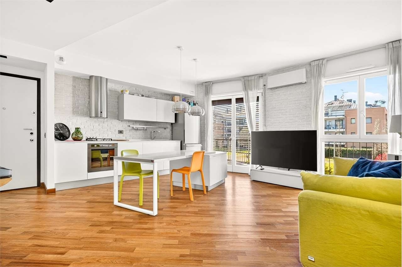 Immobiliare casabella per informazioni su questo immobile contattare elena panzera rho zona san pietro, affittiamo 3 locali con posto auto coperto.l'appartamento si trova al primo piano di una palazzina del 2011 servita di ascensore.entriamo nell'ampio e luminoso soggiorno con con due porte finestre che conducono al balcone con un tranquillo affaccio sul verde condominiale, da un primo disimpegno si accede ad una camera e un bagno con vasca, dal secondo disimpegno si arriva alla seconda camera da letto con il bagno finestrato servito di doccia.l'appartamento è arredato come in foto è dotato di aria condizionata, lavastoviglie forno e lavatrice.riscaldamento e acqua centralizzati con gestione autonoma dei consumi.posto auto coperto al piano seminterrato.classe energetica 'b' in fase di aggiornamentocanone mensile € 1100 + € 220 spese condominiali che includono acqua calda, fredda e riscaldamento.cauzione tre mensiltà.locazione transitoria 12/18 mesi immobiliare casabella per informazioni su questo immobile contattare elena panzera classe energetica: b