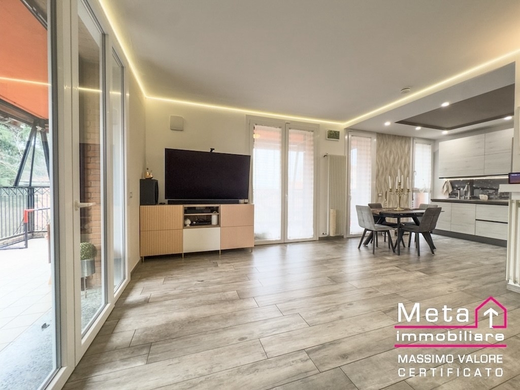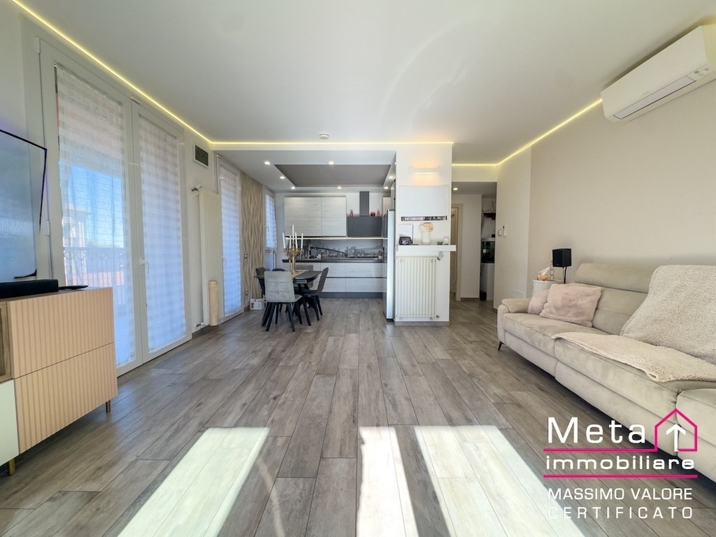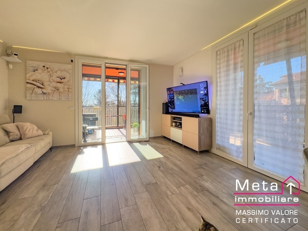 A civesio, nel comune di san giuliano milanese, proponiamo un quadrilocale di 125 m in classe energetica a1, situato al secondo piano di una residenza elegante immersa nel verde. L'appartamento, ristrutturato nel 2020 e libero al rogito, si distingue per un terrazzo meraviglioso di 24 m, uno spazio davvero raro, perfetto per godersi la tranquillità del giardino condominiale.l'ingresso conduce a un ampio soggiorno con cucina a vista angolare, un ambiente luminoso e accogliente che si apre direttamente sul terrazzo, regalando una vista piacevole e una continuità tra interno ed esterno. La casa è organizzata in due zone notte ben separate: da un lato una suite riservata, completa di bagno privato e balcone; dall'altro due camere da letto, un secondo bagno e una comoda lavanderia. Completano la proprietà una cantina e un box di 23 m.l'abitazione è stata curata con attenzione sia dal punto di vista estetico sia da quello tecnologico. Le pareti perimetrali sono state coibentate tramite insufflaggio in lana di vetro, cosù come i ribassamenti delle camerette e del bagno finestrato. Gli infissi in pvc con doppio vetro si abbinano a persiane in alluminio con alette regolabili, tutte le finestre sono dotate di zanzariere e il terrazzo è completamente richiudibile. Le tende da sole sono elettriche e domotiche, l'impianto di climatizzazione daikin con tre split è gestibile da remoto, e la casa è dotata di allarme, vmc sudwind, valvole termostatiche con termostato netatmo, punti luce domotici bticino, docce con comandi termostatici e persino una wallbox autel per la ricarica dell'auto elettrica.la residenza è perfetta per chi desidera vivere in un contesto silenzioso, curato e circondato dal verde, senza rinunciare alla vicinanza con milano e ai servizi del quartiere. Un'oasi di pace ideale per chi cerca una casa moderna, confortevole e con spazi davvero generosi.se per acquistare questo immobile hai bisogno di vendere la tua casa, il consulente che ti seguirà potrà affiancarti anche in questo passaggio: meta immobiliare offre una valutazione garantita, con indicazione del valore di mercato e del valore massimo realizzabile in tempi certi.le informazioni e le immagini presenti sono indicative e non costituiscono elemento contrattuale.