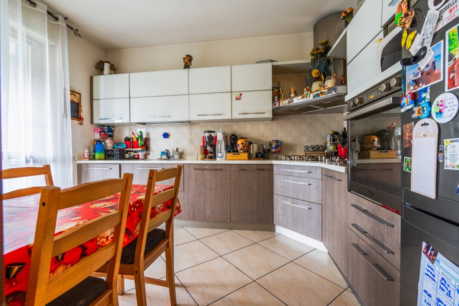 Trilocale con doppi servizi e terrazzo - seguro (mi)in tranquillo contesto residenziale edificato nel 2011, proponiamo in vendita luminoso appartamento di tre locali situato al secondo piano con ascensore. L'immobile si presenta in ottimo stato manutentivo, con finiture moderne e dotazioni tecnologiche di ultima generazione.distribuzione degli spazi? zona giorno: ingresso su ampio soggiorno e cucina abitabile separata; entrambi gli ambienti hanno accesso diretto al terrazzo loggiato, profondo e sfruttabile.? zona notte: disimpegno che conduce alla camera matrimoniale con bagno en-suite, seconda camera da letto e secondo bagno padronale.caratteristiche tecniche e finiturel'appartamento è progettato per un alto comfort abitativo e risparmio energetico:? riscaldamento a pavimento a gestione autonoma.? termostati indipendenti in ogni ambiente per la regolazione puntuale della temperatura.? impianto di raffreddamento e deumidificazione. ? pavimentazione uniforme in grès porcellanato in tutta la superficie.? infissi in legno con doppio vetro a taglio termico e zanzarierepertinenze e consegna? box auto di proprietà incluso nel prezzo.? l'immobile sarà disponibile nell'estate 2027.posizione strategicasituato nella frazione di seguro (settimo milanese), l'immobile coniuga la tranquillità della zona con la vicinanza strategica a milano. Nota di rilievo per la futura valorizzazione: l'appartamento dista pochi minuti dal prossimo prolungamento della linea mm baggio, rendendo la soluzione un eccellente investimento a lungo termine.per maggiori informazioni o per fissare un appuntamento contattaci al t. + e-mail - -