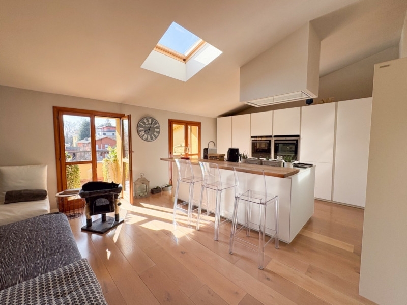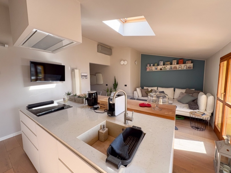 Proponiamo in vendita a biassono zona 'parco' un raffinato appartamento quadrilocale di 160 mq commerciali su due livelli con ampi terrazzi, ideale per chi cerca comfort e modernità in una delle zone più tranquille e ben servite della brianza a poca distanza dall'ingresso del 'parco di monza'.l'immobile si distingue per l'ampia zona living open space con cucina moderna su isola centrale, dotata di piano cottura ad induzione, doppio forno incassato ed eleganti finiture bianche che donano luminosità all'ambiente grazie anche alle grandi vetrate affacciate sul terrazzo vivibile di 16 mq esposto a sud con comode intercapedini perimetrali utilizzabili come ripostiglio.il soggiorno è accogliente e arredato con gusto contemporaneo, arricchito da dettagli come la parete colorata con mensole decorative, che in realtà sono termo arredi di design, e un ampio divano angolare perfetto per rilassarsi o ricevere ospiti.la camera matrimoniale molto ampia e con possibilità di creare una cabina armadio e diretto acceso al balcone di 10 mq, due camerette spaziose, una attualmente adibita a sala pranzo.bagno padronale finestrato con vasca, bagno di servizio con lucernario e doccia king size e comoda lavanderia con sfogo sul terrazzo di 13 mq esposto a nord.l'appartamento dotato di aria condizionata è stato completamene ristrutturato e presenta finiture molto pregiate, l'attuale stato interno è praticamente pari al nuovo. i pavimenti in parquet chiaro aggiungono calore agli ambienti mentre la presenza del lucernario regala luce naturale tutto il giorno rendendo ogni spazio ancora più arioso.completa la proprietà l'acquisto obbligatorio del box doppio in larghezza ad € 35.000,00.il contesto condominiale è ordinato con spese contenute (solo 50 euro al mese), posizione strategica vicina ai principali servizi cittadini: scuole, negozi, aree verdi del parco di monza raggiungibili facilmente anche a piedi o in bicicletta. posizione strategica per raggiungere le principali arterie stradali e la stazione ferroviaria per spostarsi comodamente a milano.non perdere questa occasione unica! contatta subito la nostra agenzia per fissare una visita: lasciati conquistare dalla qualità degli spazi abitativi pensati su misura per te.la presente pubblicità è da considerarsi puramente indicativa e non costituisce in nessun caso vincolo contrattuale.