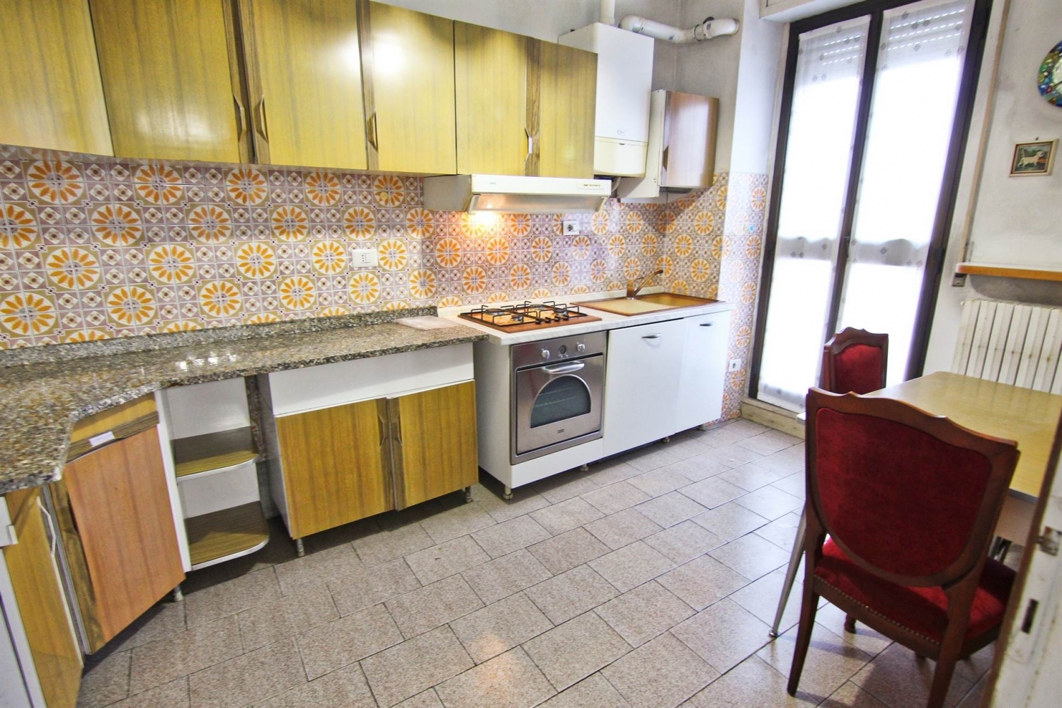 Collocato in un contesto condominiale sito nel pieno centro del paese, la posizione dell'unità immobiliare consente l'immediato utilizzo dei servizi primari raggiungibili comodamente a piedi.all'ultimo piano servito da ascensore è sito l'appartamento, ampio e luminoso, contraddistinto per una distribuzione interna pratica e razionale.l'ingresso è nel corridoio, ambiente di distribuzione per i locali della casa. Il soggiorno è comodo negli spazi, in grado di ospitare la zona relax con divano e il tavolo da pranzo. La portafinestra consente l'accesso al balconcino. La cucina è abitabile, di generosa metratura, dove è possibile inserire il secondo tavolo ed è servita da ulteriore balcone. Il disimpegno collega la zona notte composta da due ampie camere da letto e bagno. Completano cantina e box auto.l'appartamento presenta lavori interni di ristrutturazione da eseguire per renderlo con finiture attuali. L'impianto di distribuzione del riscaldamento è già stato sostituito con tubazioni del tipo in rame, ragione per cui è possibile, nel caso di rifacimento della pavimentazione, poter incollare il nuovo pavimento sopra quello esistente. L'appartamento è in pronta consegna. Riscaldamento autonomo. Classe energetica: g epi: 338,79 kwh/m2 anno
