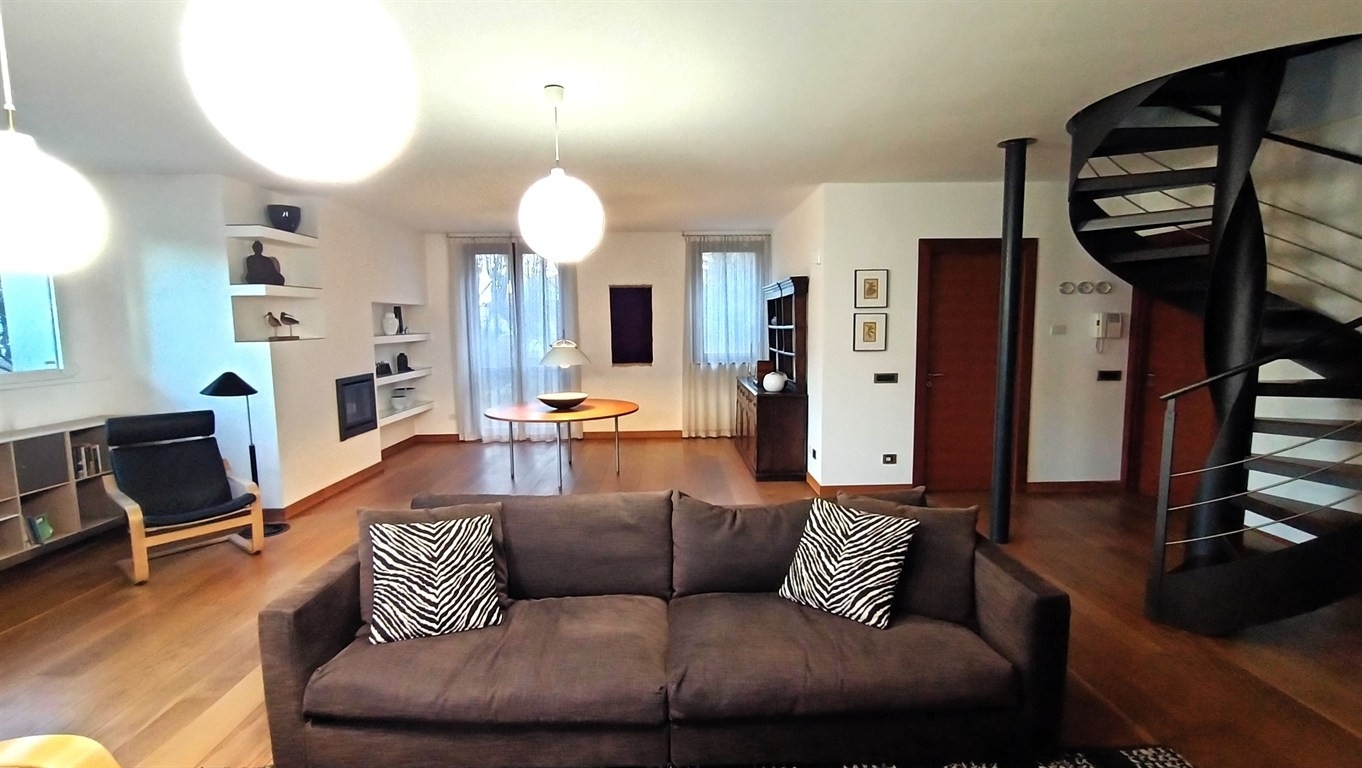 Lesmo (mb) zona centro, in esclusivo e signorile mini contesto residenziale immerso nel verde, proponiamo un luminosissimo appartamento con doppio ingresso su due livelli abitativi di circa 200 mq di rara eleganza e grande carattere, una soluzione capace di coniugare comfort contemporaneo e ricercatezza architettonica. I due piani sono dotati di proprio ingresso indipendente ma collegati tra loro da una scala interna su misura dal design ricercato ed accattivante firmata 'zichichi'. Elemento architettonico che impreziosisce gli ambienti e ne sottolinea la personalità. Al piano primo dedicato alla zona giorno troviamo un salone triplo con camino e terrazzo coperto al piano, che date le sue dimensioni permette la creazione per chi volesse di una camera al piano. L'ampia cucina abitabile è molto funzionale ed è in grado di ospitare comodamente più persone, anche questo locale è dotato di uno spazio esterno in particolare di un ampio balcone, completa il piano un ampio servizio finestrato dotato di sanitari sospesi e vasca coerente con lo stile signorile e contemporaneo dell'abitazione. Il piano secondo mansardato abitabile con notevoli altezze sorprende per i suoi volumi ed è dotato sia di porte finestre che semplici finestre a parete e lucernari che rendono ogni ambiente estremamente luminoso ed accogliente. Qui troviamo una camera matrimoniale con proprio terrazzo, una seconda camera con balcone e cabina armadio ed una terza camera anch'essa di metratura generosa, un servizio con sanitari sospesi e piatto doccia oltre ad una pratica lavanderia dedicata completano questo piano. Elemento di assoluto pregio: il piano mansardato dispone di ingresso autonomo e indipendente dal vano scala condominiale tramite porta blindata, caratteristica rara e di grande valore che permetterebbe in futuro a chi ne abbisognasse di frazionare l'unità in 2 appartamenti. Eccovi l'elenco delle finiture: riscaldamento a pavimento su entrambi i piani con doppio termostato, parquet in legno in tutta l'abitazione, gres porcellanato in cucina, impianto di aria condizionata in pompa di calore su entrambi i piani, impianto di antifurto completo (perimetrale, volumetrico interno e barriere esterne), serramenti in legno con doppio vetro e vetrata della zona giorno in alluminio. Completa la proprietà box singolo al piano interrato ad € 20.000,00. La richiesta per questa opportunità immobiliare è di euro 495.000,00 per l'appartamento ed euro 20.000,00 per il box per un totale di € 515.000,00. Classe energetica 'd' ipe '167,63' kw/mq note: le metrature sono del tutto indicative e non potranno essere utilizzate come parte integrante in un eventuale contratto di vendita o locazione della proprietà lorenzo zorzetto