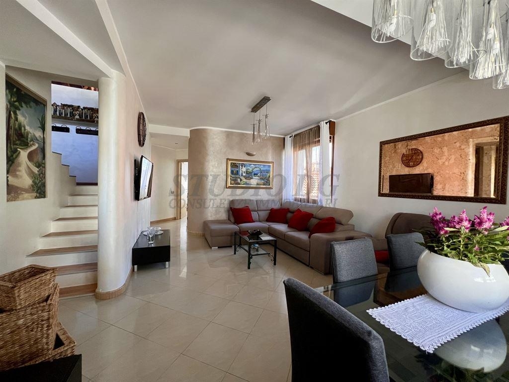 Siamo lieti di presentarvi una soluzione davvero interessante nel cuore di limbiate: una porzione di villa trifamiliare, ideale per chi cerca ampi spazi, indipendenza e comodità, senza rinunciare ai servizi della zona centrale.l'abitazione si sviluppa su due livelli, per un totale di 220 mq, ed è perfettamente suddivisa per garantire funzionalità e comfort.salendo dal vano scala comune, si accede al primo piano, dove ci accoglie un elegante ingresso che introduce a un ampio e luminoso soggiorno, separato dalla cucina abitabile. Il living si affaccia su un terrazzo loggiato, perfetto per momenti di relax all'aperto.la zona notte è ben distribuita e comprende una camera matrimoniale, due camere doppie, un bagno di servizio, un bagno/lavanderia e un ulteriore balcone.al piano superiore troviamo una splendida mansarda open space con travi a vista, dalla forte personalità, caratterizzata da altezze generose (fino a 4,20 m) che donano respiro e luce. Lo spazio è già predisposto per l'eventuale realizzazione di una cucina e di un secondo bagno. Completano questo livello due terrazzini, che aggiungono ulteriore sfogo esterno.tra le dotazioni dell'immobile non mancano: aria condizionata, impianto d'allarme e videocitofono.prezzo richiesto: € 350.000una soluzione perfetta per famiglie o per chi cerca una casa spaziosa, ben rifinita e in una posizione strategica.per ulteriori informazioni o per prenotare una visita:ðŸ"ž ðŸ"§