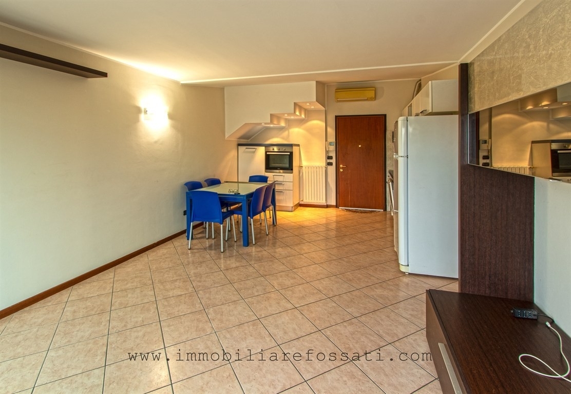 Zona centro sportivo/stazione, ultimo piano, appartamento mansardato, 3 locali e servizi, con terrazzo, recente costruzione (anno 2006), parzialmente arredato.superficie : catastale e commerciale mq. 72, compreso terrazzo mq. 8.canone annuo : €. 12.000,00 attestato prestazione energetica a.p.e. Classe 'g' 300,00 kwh/mq.a.locali : ingresso nel soggiorno con cucina a vista, affaccio sul terrazzo ad ovest, disimpegno notte, 2 camere (matrimoniale e singola) e bagno finestrato.consegna : alla stipula del contratto di locazioneesposizione : appartamento esposto a ovest con terrazzo.riscaldamento : autonomo con radiatori in ghisa e scalda salviette, impianto aria condizionata con inverter (caldo/freddo).serramenti : in legno scorrevole (binario) essenza 'hemlok' tinto scuro con vetrocamera e zanzariere, tende scorrevoli elettrificate sul terrazzo.interni : particolare studio degli ambienti con spazi e dimensioni progettati con razionalità, pavimenti in ceramica nella zona giorno e in parquet essenza 'iroko' nella zona notte. edificio : complesso condominiale costruito da primaria impresa edile (f.lli mosca) composto da 6 palazzine a 4 piani + mansarde, con progetto moderno e piano terra a pilotis (atrio di ingresso centrale e coperto), tetto a falda mansardato e balconi loggiati, grandi spazi a giardino piantumato con aiuole, siepi e roseti, percorsi e sentieri interni in piastrelle cementizie.posizione : adiacente al centro sportivo (piscina) e alla stazione ferroviaria, con supermercati e scuole, grandi spazi a verde e parcheggi, ottimi e comodi collegamenti con statali (valassina) e autostrade.