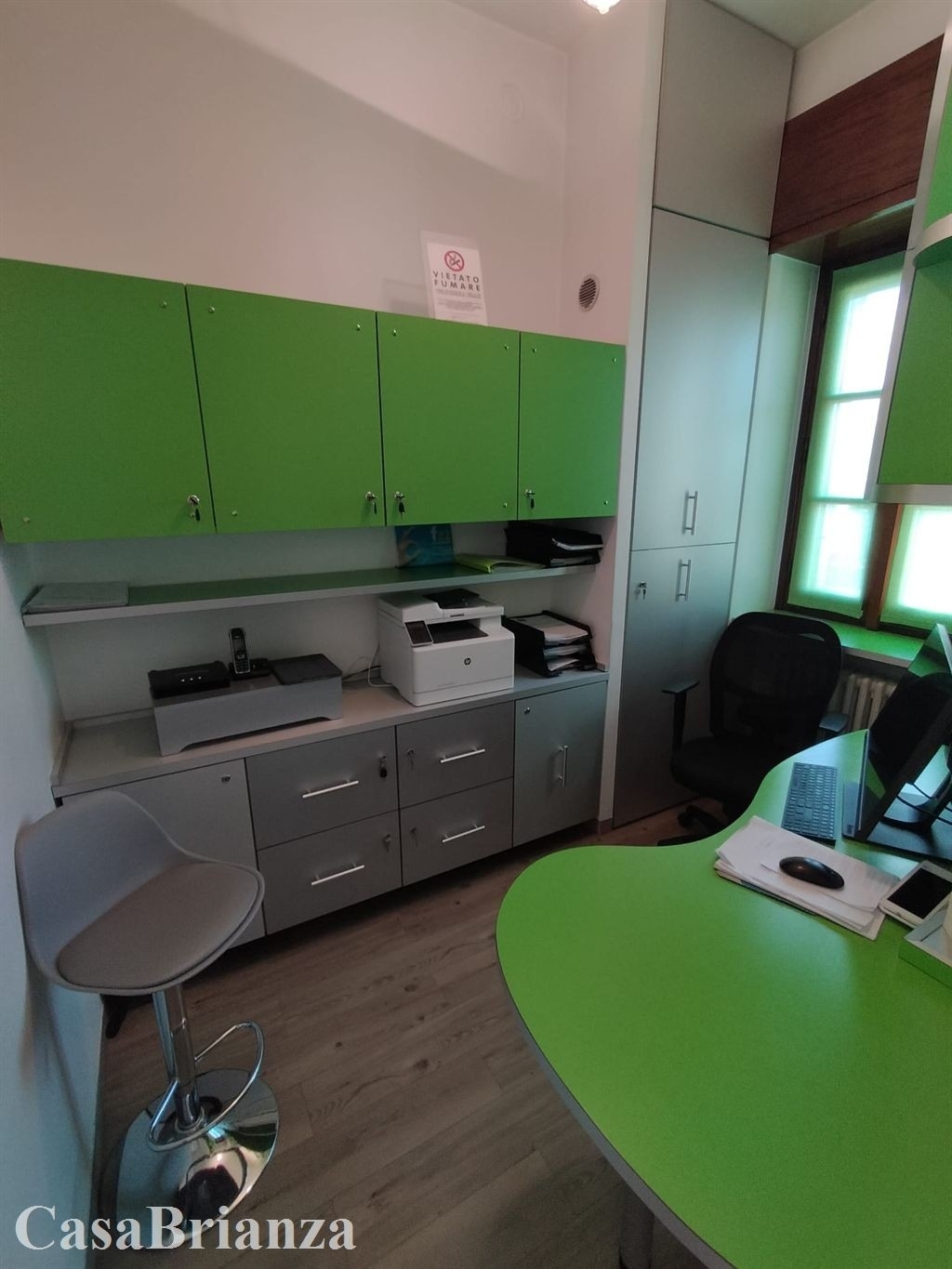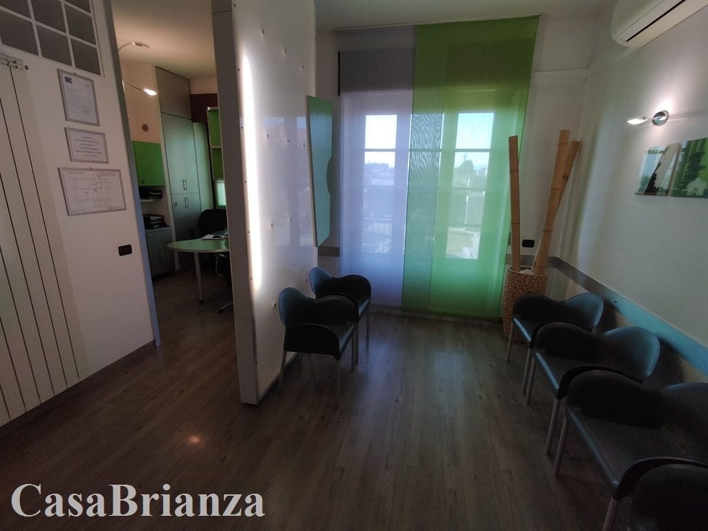 Macherio, in mini-palazzina con pochissime spese condominiali, composta da sole tre unità, proponiamo in vendita ufficio-studio posto al piano rialzato con box singolo. l' ufficio si trova in ottimo stato di manutenzione ed è composto da accogliente e luminosa sala d'attesa, reception, due vani operativi, spazio di lavorazione riservato al personale, due bagni (uno per portatori di handicap) e spogliatoio. accesso per disabili dall'area giardino tramite scaletta con servo scala e quindi senza barriere architettoniche, adeguate condizioni secondo normativa dei servizi igienici, impianto di condizionamento e locali raffrescati in modo indipendente per ogni stanza e impianto di anti-intrusione. Completa la proprietà il box singolo fuori terra.lo studio è attualmente locato ad uno studio medico attivo da moltissimi anni e quindi non è adatto a chi cerca uno spazio per il proprio utilizzo ma come investimento a reddito.la soluzione è comoda a livello di viabilità (strada statale nuova valassina e strada provinciale monza - carate brianza) e non lontano da tutti i servizi di lissone e macherio centro.